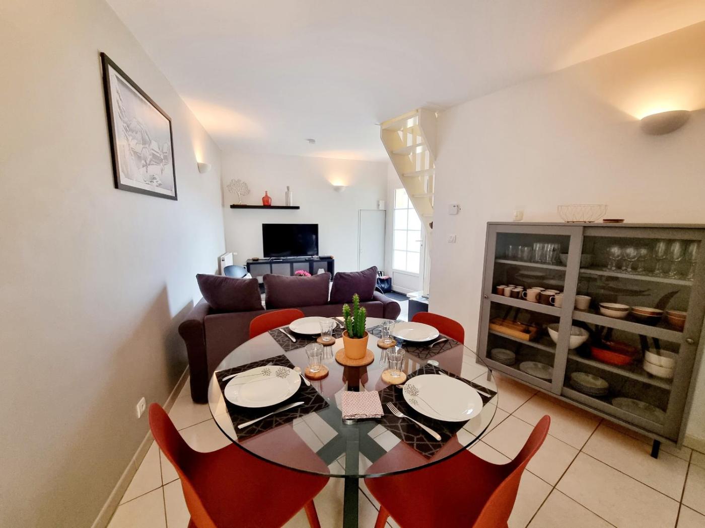 Maison 2 Chambres. Featuring a private entrance, this holiday home also is comprised of 2 bedrooms, a seating area and 1 bathroom with a shower and a hairdryer. In the well-equipped kitchen, guests will find a refrigerator, a dishwasher, kitchenware and an oven. This holiday home features a washing machine, a tea and coffee maker, a flat-screen TV and an outdoor dining area. The unit offers 2 beds.