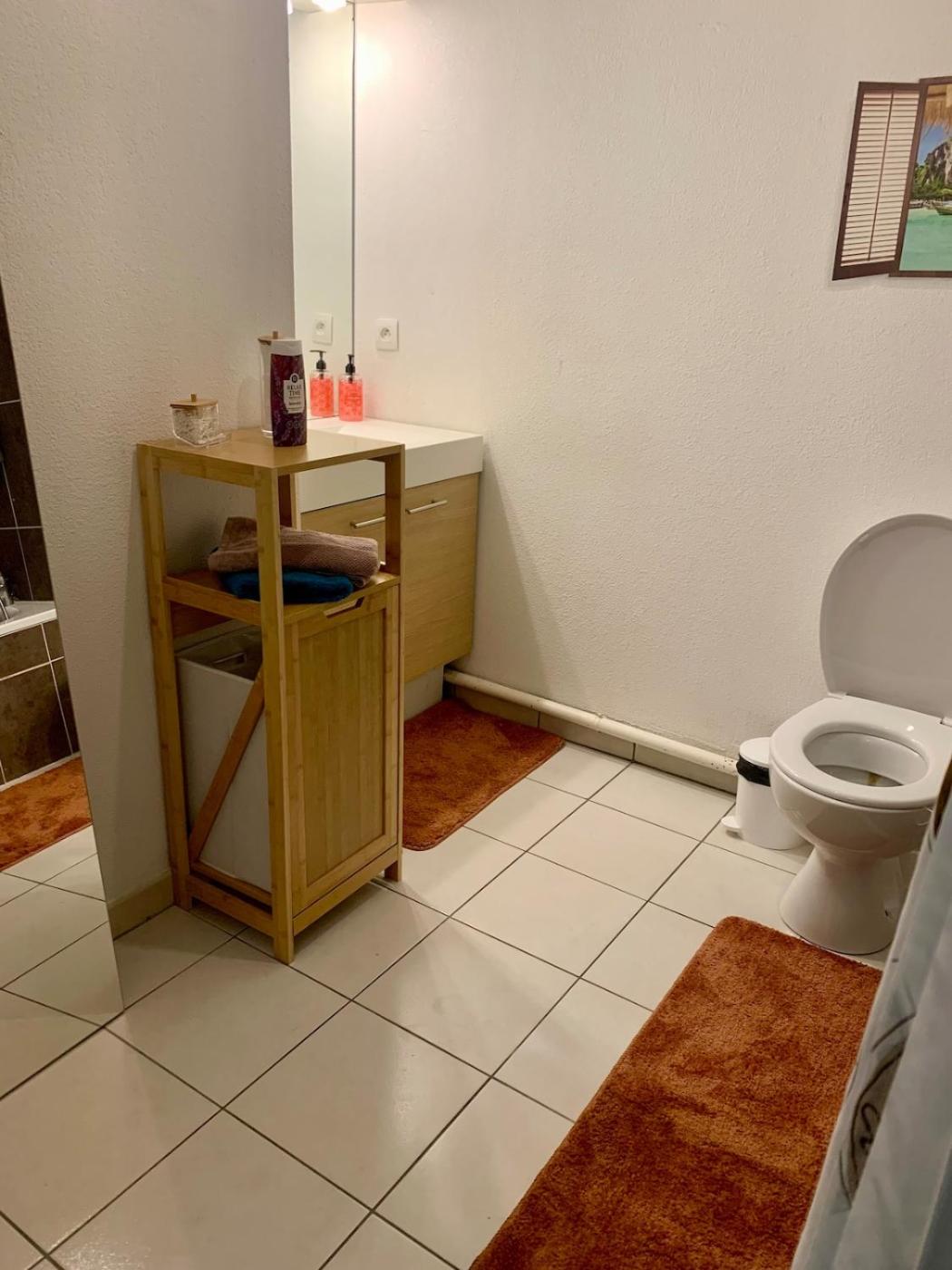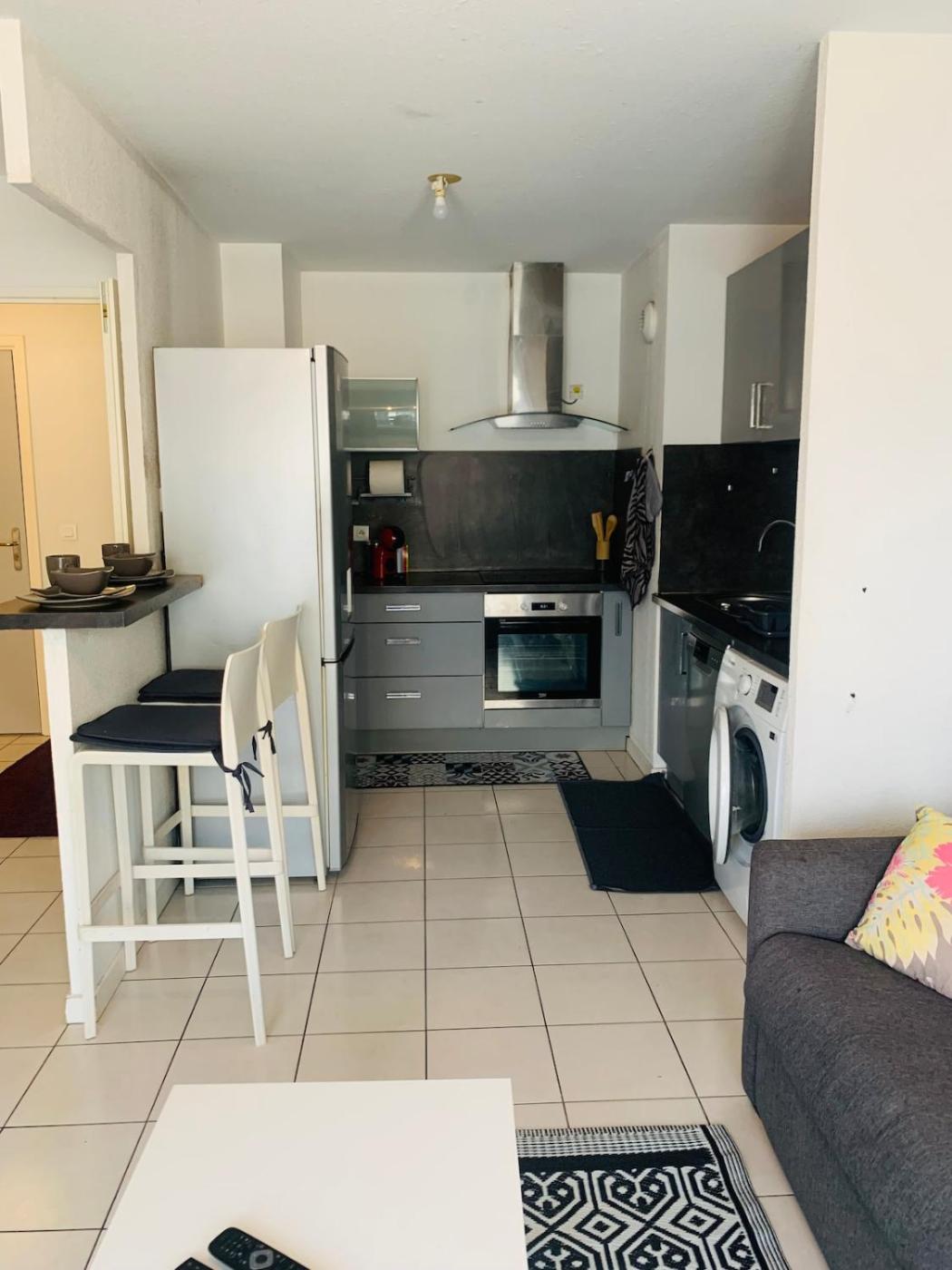 Appartement 1 Chambre. This air-conditioned apartment comes with 1 living room, 1 separate bedroom and 1 bathroom with a bath. Meals can be prepared in the kitchen, which features a stovetop, a refrigerator, a dishwasher and kitchenware. This apartment has a washing machine, a coffee machine, a flat-screen TV and a balcony. The unit has 2 beds.