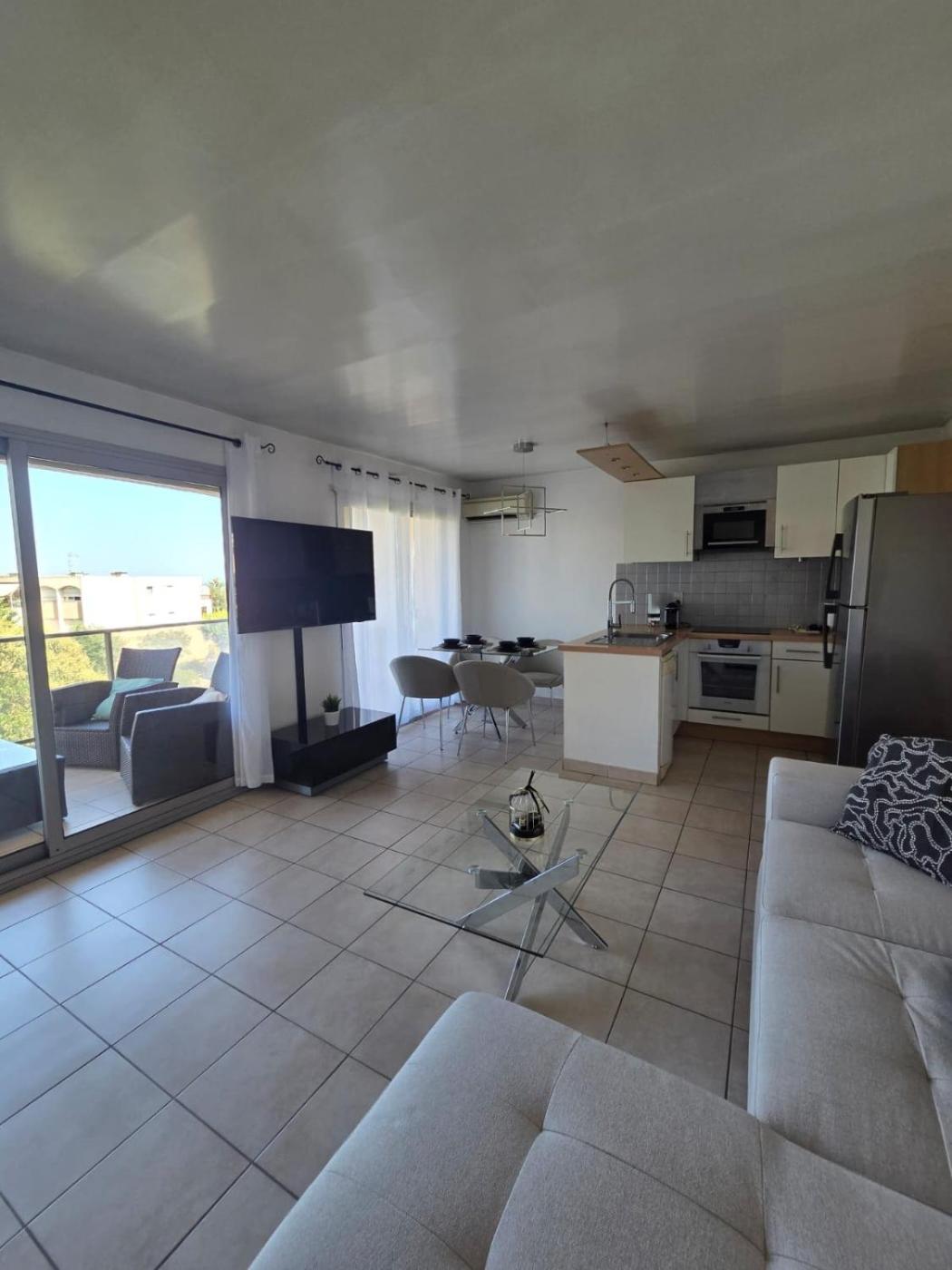 Appartement 1 Chambre. This apartment provides a private pool. This air-conditioned apartment is comprised of 1 living room, 1 separate bedroom and 1 bathroom with a shower. The well-fitted kitchen features a stovetop, a refrigerator, a dishwasher and kitchenware. Featuring a terrace with sea views, this apartment also offers a washing machine and a flat-screen TV with streaming services. The unit offers 2 beds.