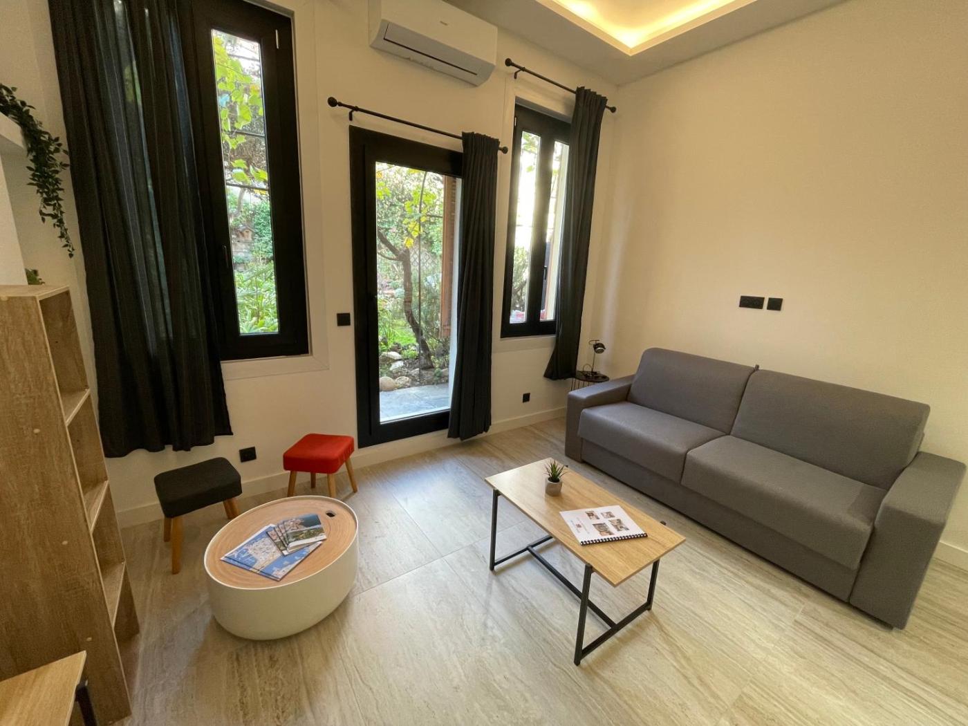 Appartement 1 Chambre. This apartment is comprised of 1 living room, 1 separate bedroom and 1 bathroom with a shower and free toiletries. Guests can make meals in the kitchen that is fitted with a stovetop, a refrigerator, kitchenware and an oven. The air-conditioned apartment offers a flat-screen TV with streaming services, a washing machine, soundproof walls, a tea and coffee maker as well as garden views. The unit offers 2 beds.