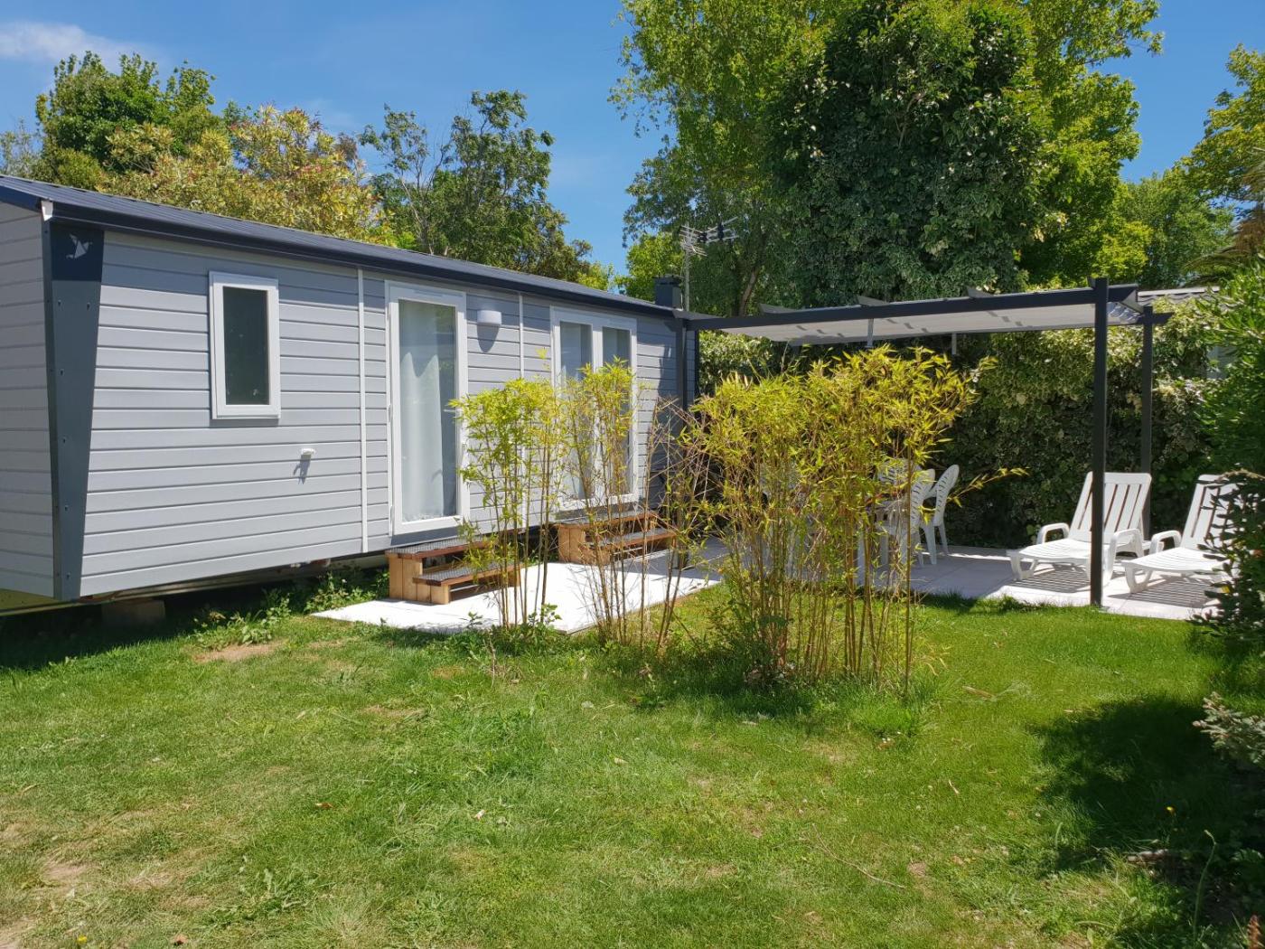 Mobile Home Confort. This air-conditioned mobile home comprises 1 living room, 2 separate bedrooms and 1 bathroom with a shower. Meals can be prepared in the kitchen, which comes with a stovetop, a refrigerator, kitchenware and a microwave. Featuring a terrace with garden views, this mobile home also provides a coffee machine and a flat-screen TV. The unit offers 3 beds. ;