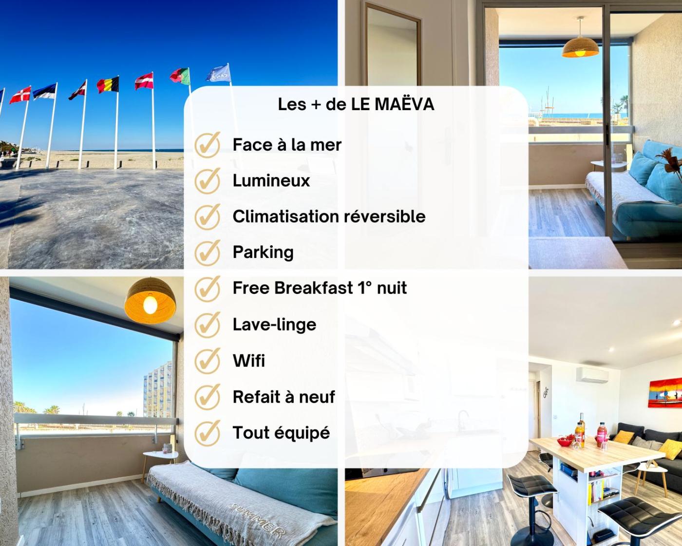 Le Maëva - T2- Front de mer- Clim - Parking - Wifi- SudSéjourConciergerie