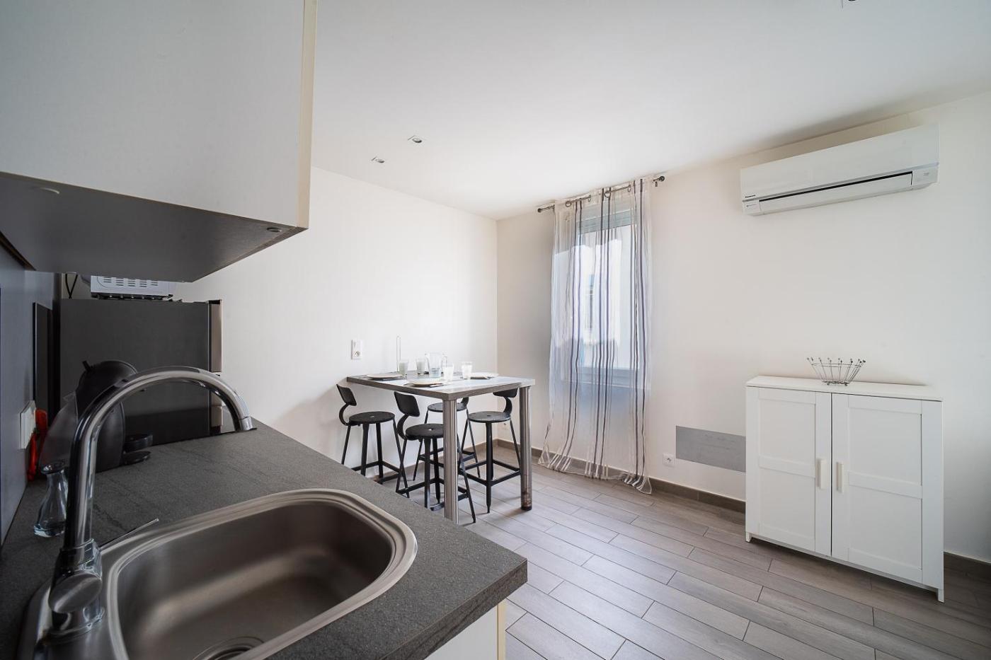 Appartement 1 Chambre. This air-conditioned apartment comprises 1 living room, 1 separate bedroom and 1 bathroom with a shower. A kitchen equipped with a dishwasher, kitchenware and a microwave is available for cooking and storing food. The apartment provides a washing machine, a sofa, heating, as well as a TV. The unit offers 2 beds.