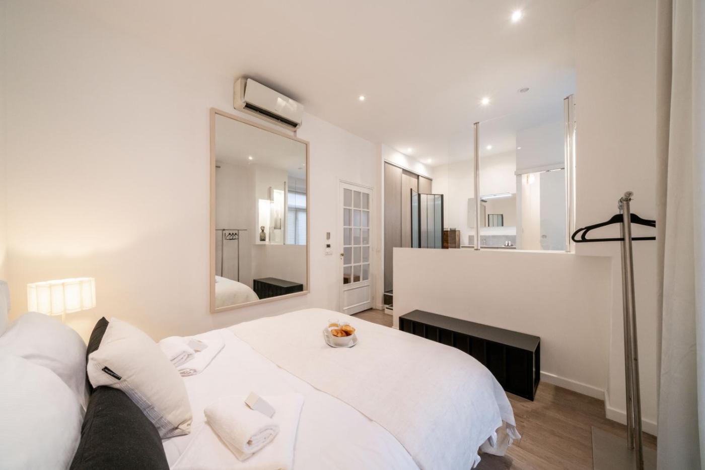 Appartement 1 Chambre. Featuring a private entrance, this air-conditioned apartment comprises 1 living room, 1 separate bedroom and 1 bathroom with a bath and a hairdryer. The fully equipped kitchen features a stovetop, a refrigerator, a dishwasher and kitchenware. The apartment provides a flat-screen TV with streaming services, a washing machine, soundproof walls, a coffee machine as well as ancourtyard view. The unit offers 2 beds.