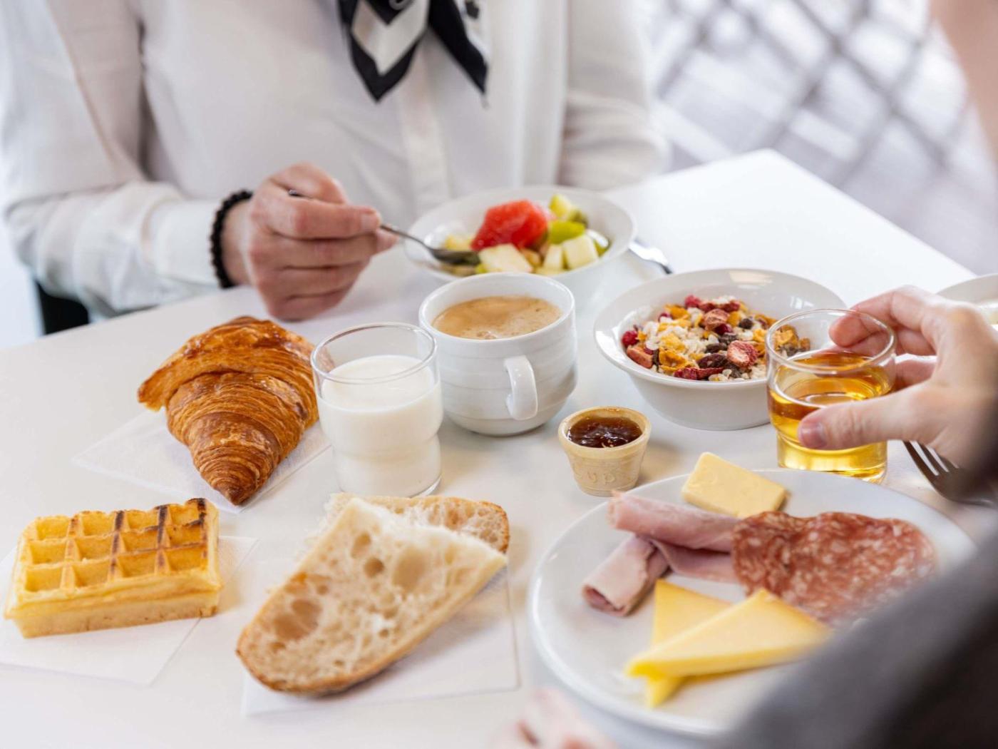 Un petit-déjeuner buffet continental est servi. Par ailleurs, Carcassonne abrite un grand nombre de restaurants, de bars et dépiceries.
