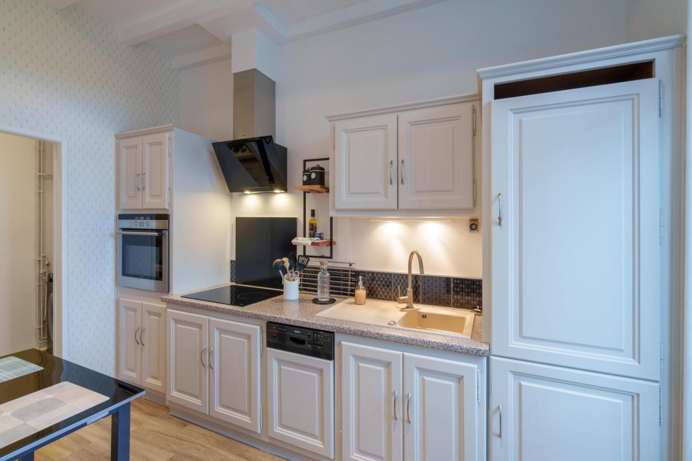 Appartement 1 Chambre. Boasting a private entrance, this apartment includes 1 living room, 1 separate bedroom and 1 bathroom with a shower and a hairdryer. In the well-fitted kitchen, guests will find a stovetop, a refrigerator, a dishwasher and kitchenware. The apartment offers a flat-screen TV with satellite channels, a washing machine, soundproof walls, a tea and coffee maker as well as city views. The unit has 2 beds.