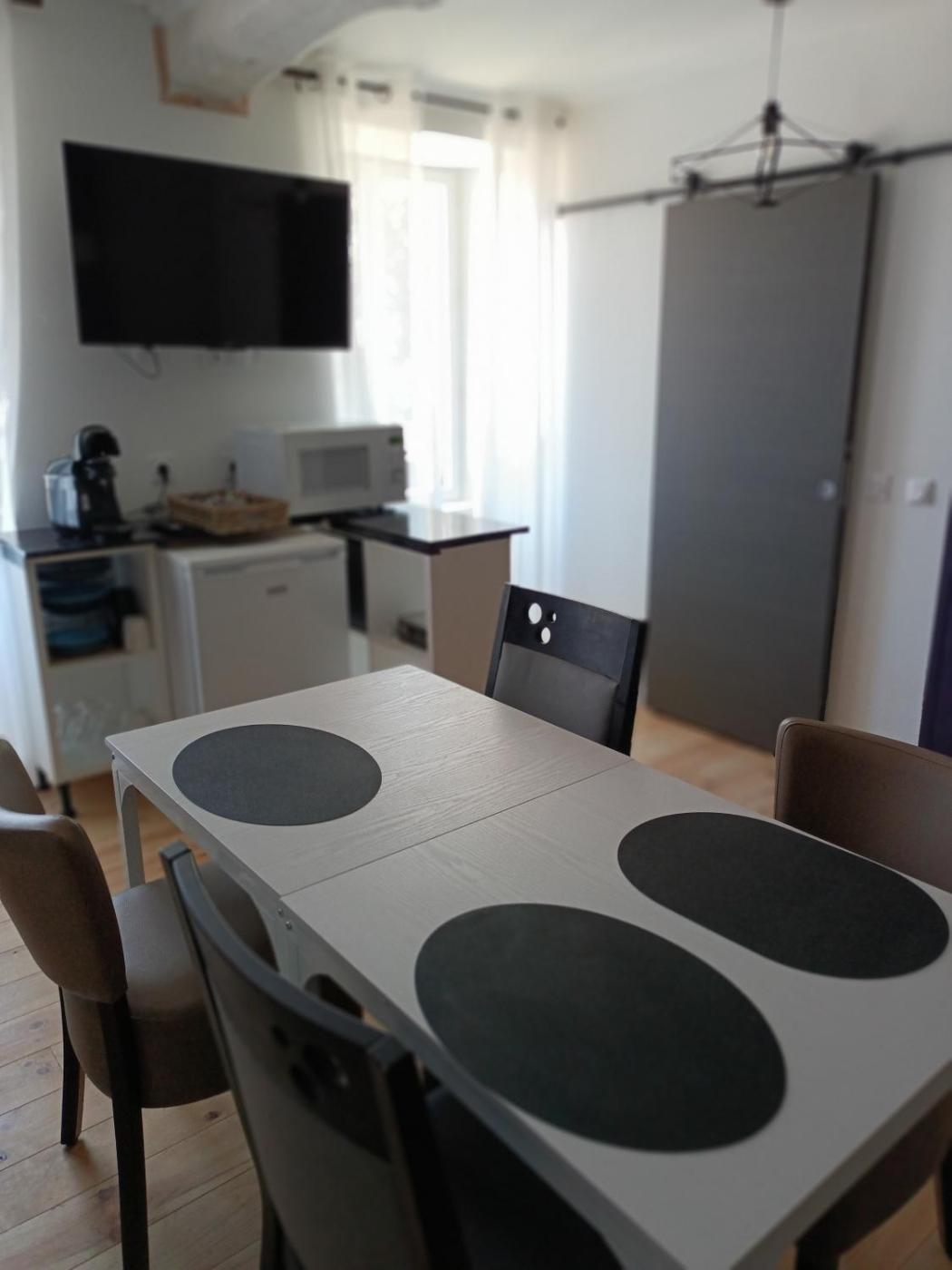Chambre Familiale. The family room provides a wardrobe, a high chair for children, as well as a private bathroom featuring a shower. The family room offers soundproof walls, a coffee machine, a dining area, a flat-screen TV, as well as garden views. The unit offers 3 beds.