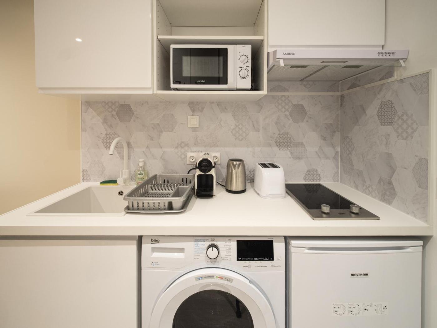 Appartement 1 Chambre. Featuring a private entrance, this apartment also is comprised of 1 bedroom, a seating area and 1 bathroom with a shower and a hairdryer. Meals can be prepared in the kitchen, which is fitted with a stovetop, a refrigerator, kitchenware and a microwave. The apartment offers a flat-screen TV with streaming services, a washing machine, soundproof walls, a tea and coffee maker as well as a quiet street view. The unit offers 1 bed.