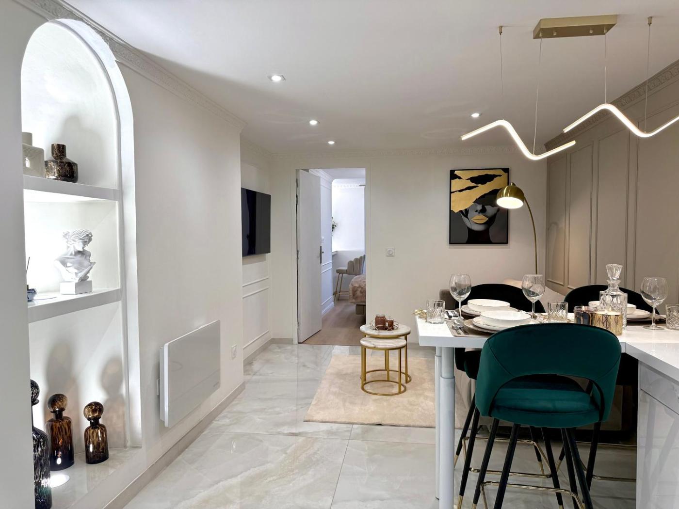 Appartement 1 Chambre. This air-conditioned apartment consists of 1 living room, 1 separate bedroom and 1 bathroom with a shower. The fully equipped kitchen features a refrigerator, a dishwasher, kitchenware and a microwave. The apartment provides a washing machine, soundproof walls, a tea and coffee maker, a flat-screen TV with streaming services, as well as city views. The unit offers 2 beds. ;