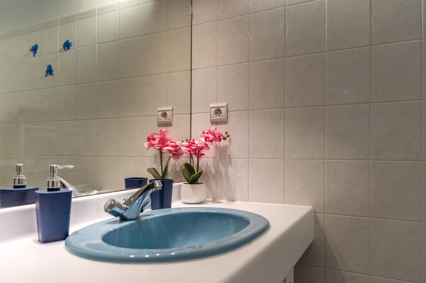 Cet appartement avec climatisation se compose de 2 chambres, dun salon, dune cuisine entièrement équipée avec un réfrigérateur et une bouilloire, ainsi que de 1 salle de bains avec une douche et un sèche-cheveux. Une télévision avec les chaînes du câble est à disposition.