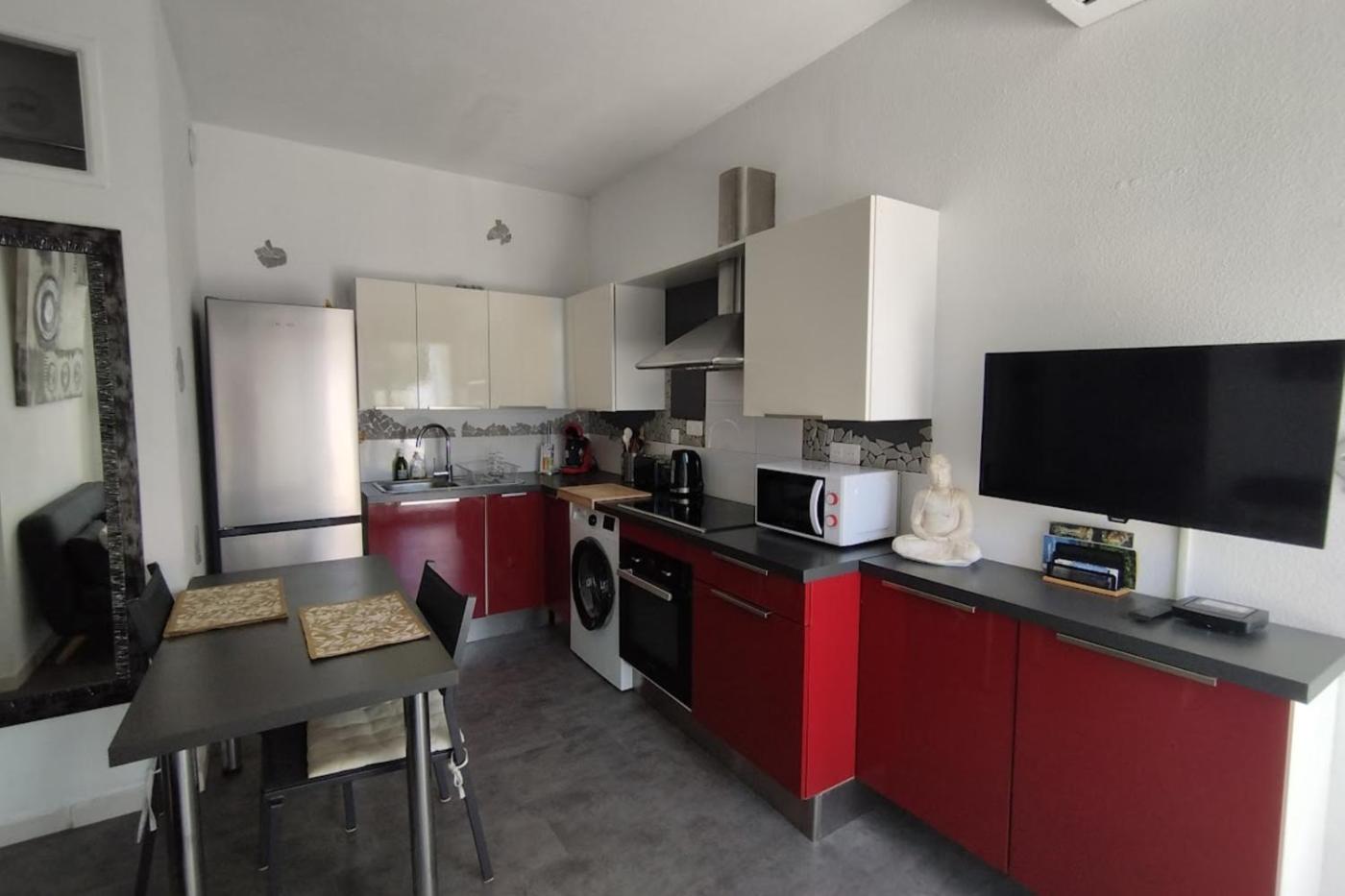 Appartement. The air-conditioned apartment has 1 bedroom and 1 bathroom with a bath or a shower and a hairdryer. In the well-equipped kitchen, guests will find a refrigerator, kitchenware, an oven and a microwave. The apartment features a washing machine, a coffee machine, a dining area, a sofa, as well as a TV. The unit has 2 beds.