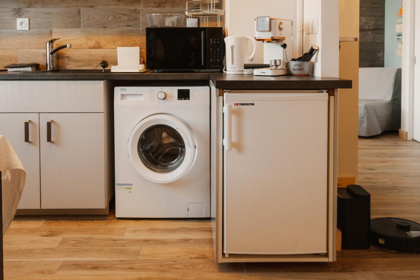 Appartement 1 Chambre. This apartment is comprised of 1 living room, 1 separate bedroom and 1 bathroom with a walk-in shower. In the fully equipped kitchen, guests will find a stovetop, a refrigerator, kitchenware and an oven. The apartment offers a washing machine, a seating area, a dining area, a flat-screen TV with cable channels, as well as city views. The unit offers 3 beds.