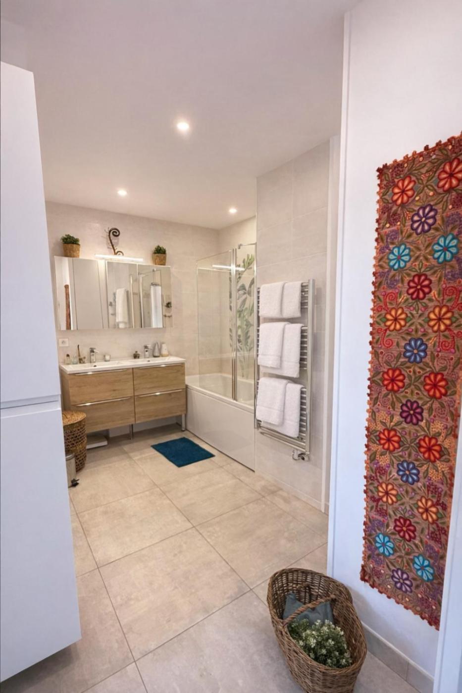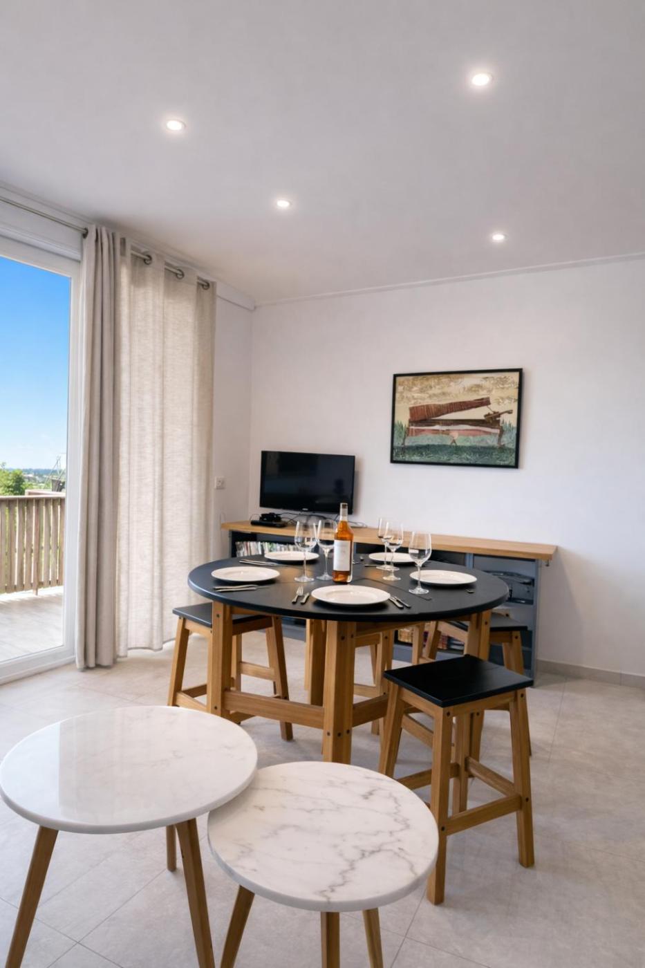 Appartement 1 Chambre. The fully equipped kitchen has a stovetop, a refrigerator, a dishwasher and kitchenware. This apartment is air-conditioned and features a seating area with a flat-screen TV, a washing machine, a tea and coffee maker, a dining area, as well as a wardrobe. The unit offers 2 beds.