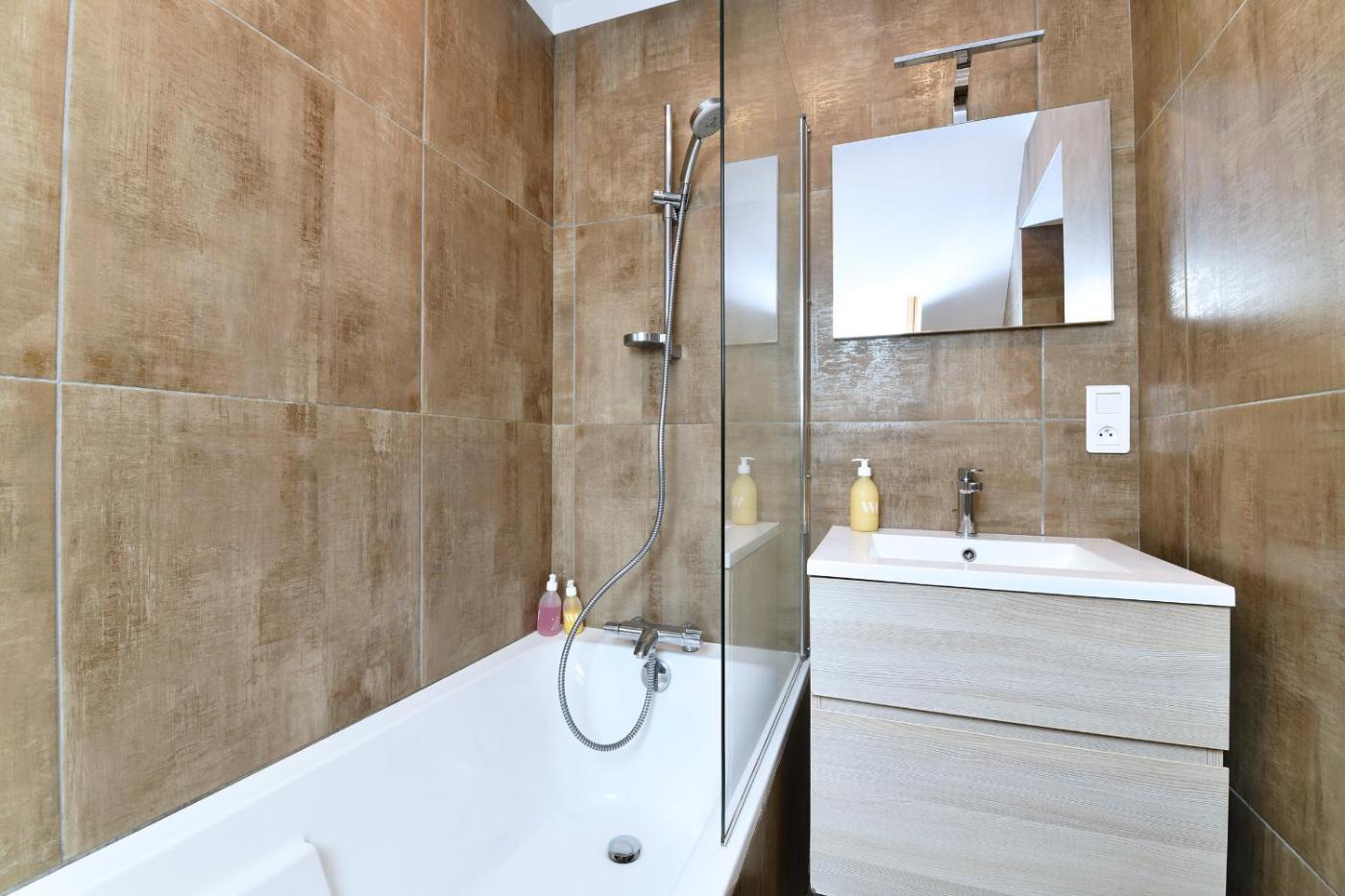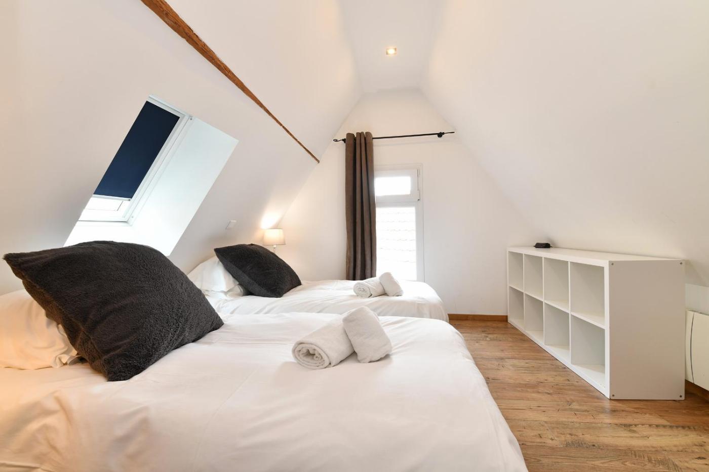Maison 3 Chambres - 1531. This holiday home consists of 1 living room, 3 separate bedrooms and 2 bathrooms with a bath and a shower. The fully equipped kitchen features a stovetop, a refrigerator, a dishwasher and kitchenware. The holiday home provides a washing machine, a coffee machine, a seating area, a flat-screen TV with cable channels, as well as ancourtyard view. The unit offers 6 beds.