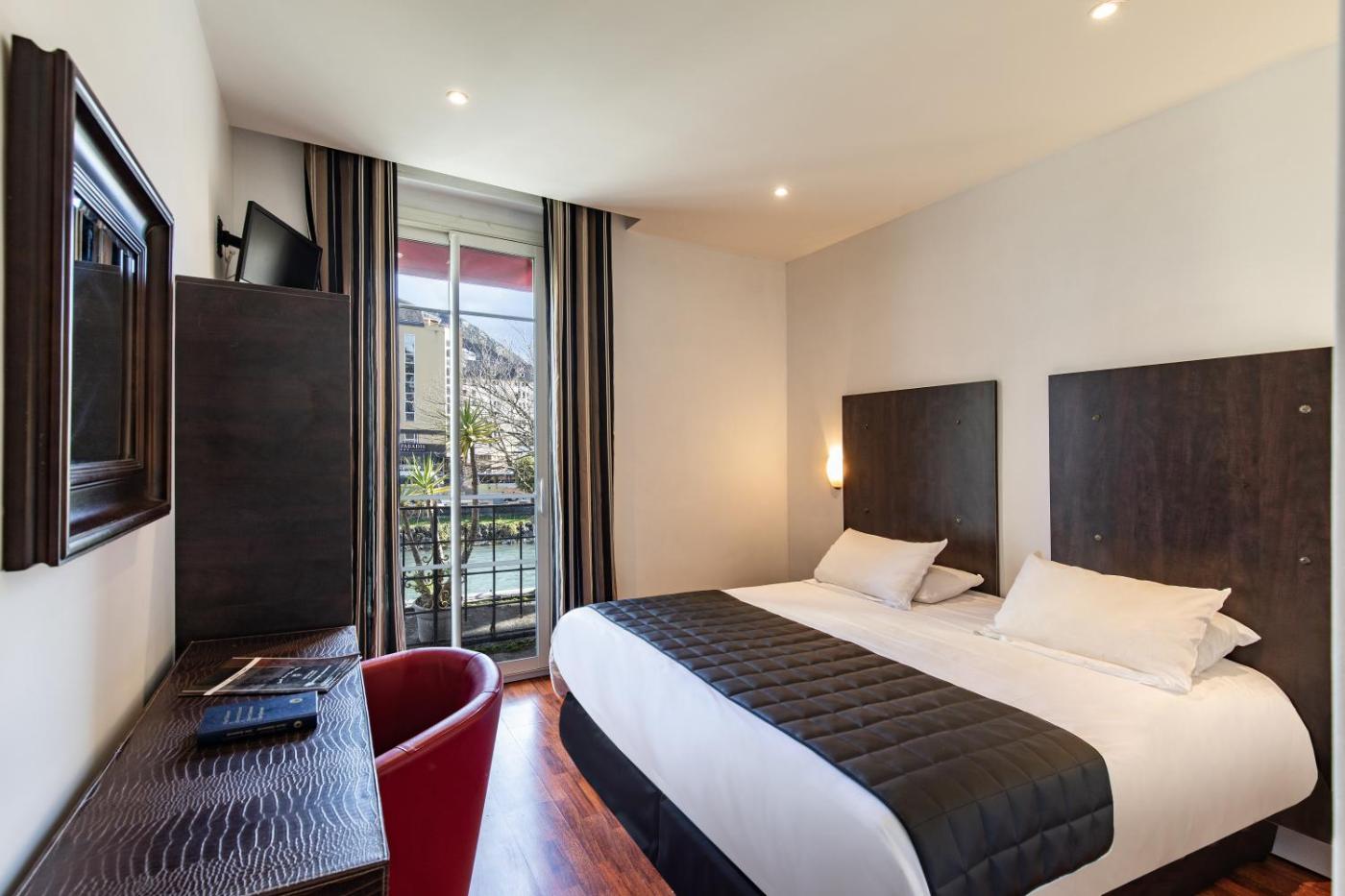 Chambre Double. This air-conditioned double room is comprised of a flat-screen TV with cable channels, a private bathroom as well as a balcony with a quiet street view. The unit has 1 bed. ;