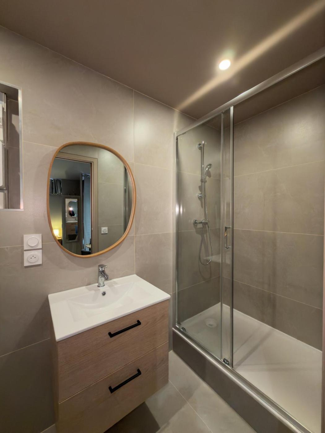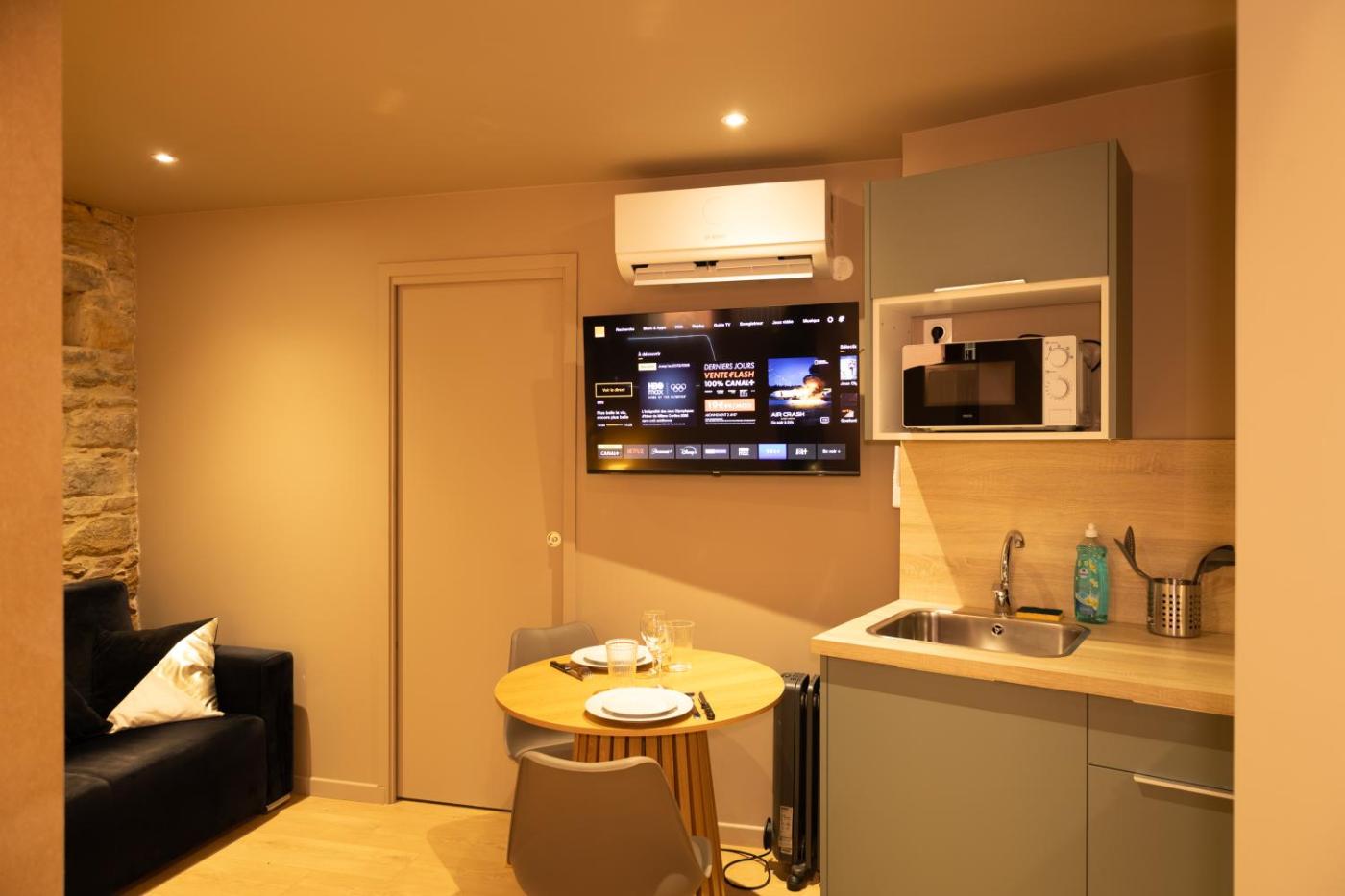 Appartement 1 Chambre. The well-fitted kitchen has a stovetop, a refrigerator and a microwave. The air-conditioned apartment offers a flat-screen TV, a private entrance, soundproof walls, a coffee machine as well as city views. The unit has 1 bed.