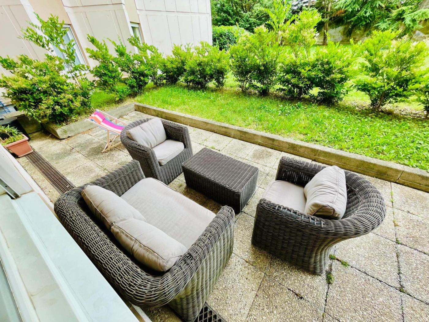 Appartement 2 Chambres. The apartments kitchen is available for cooking and storing food. Boasting a terrace with garden views, this apartment also offers a washing machine and a flat-screen TV. The unit has 3 beds.