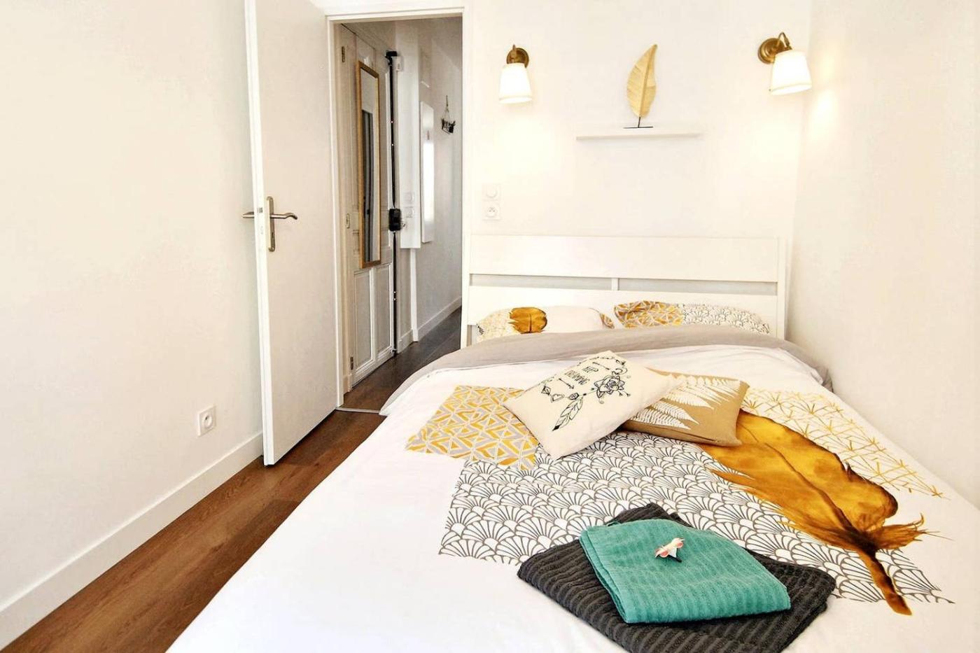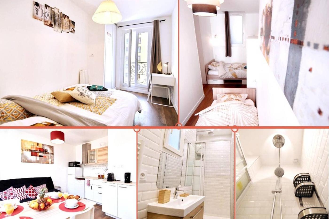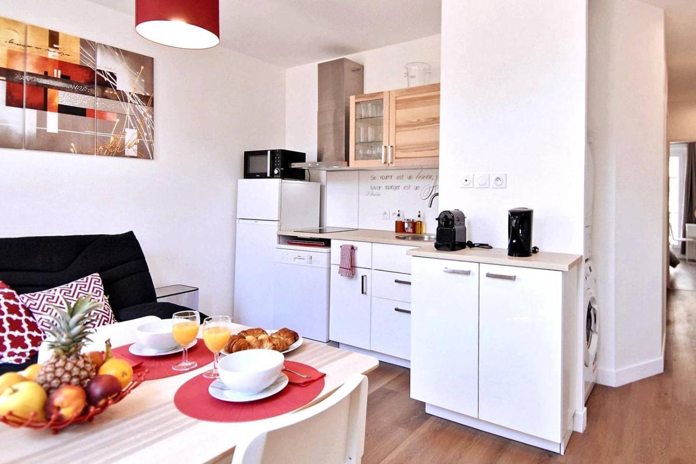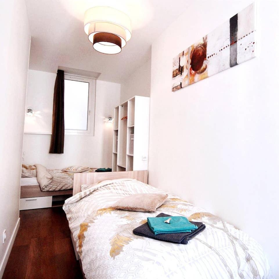 Appartement 2 Chambres. This apartment includes 1 living room, 2 separate bedrooms and 1 bathroom with a shower and a hairdryer. The well-fitted kitchen has a stovetop, a refrigerator, a dishwasher and kitchenware. The apartment offers a washing machine, soundproof walls, a tea and coffee maker, a flat-screen TV with streaming services, as well as city views. The unit has 4 beds.
