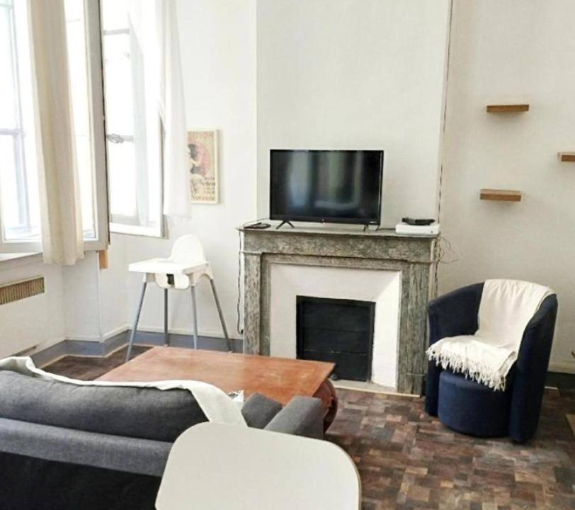 Chambre Simple. The fireplace is a top feature of this single room. The single room has a shared bathroom, a washing machine, soundproof walls, as well as a seating area with a flat-screen TV. In the well-equipped kitchen, guests will find a stovetop, a refrigerator, a dishwasher and kitchenware. The single room features a TV, a tea and coffee maker, a wardrobe, a sofa as well as ancourtyard view. The unit has 1 bed.