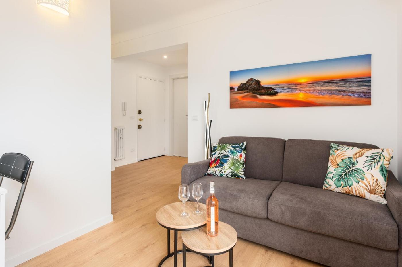 Cet appartement compte 1 chambre, une cuisine avec un réfrigérateur et un lave-vaisselle, une télévision à écran plat, un coin salon, ainsi que 1 salle de bains comportant une douche. Des serviettes et du linge de lit sont disponibles.