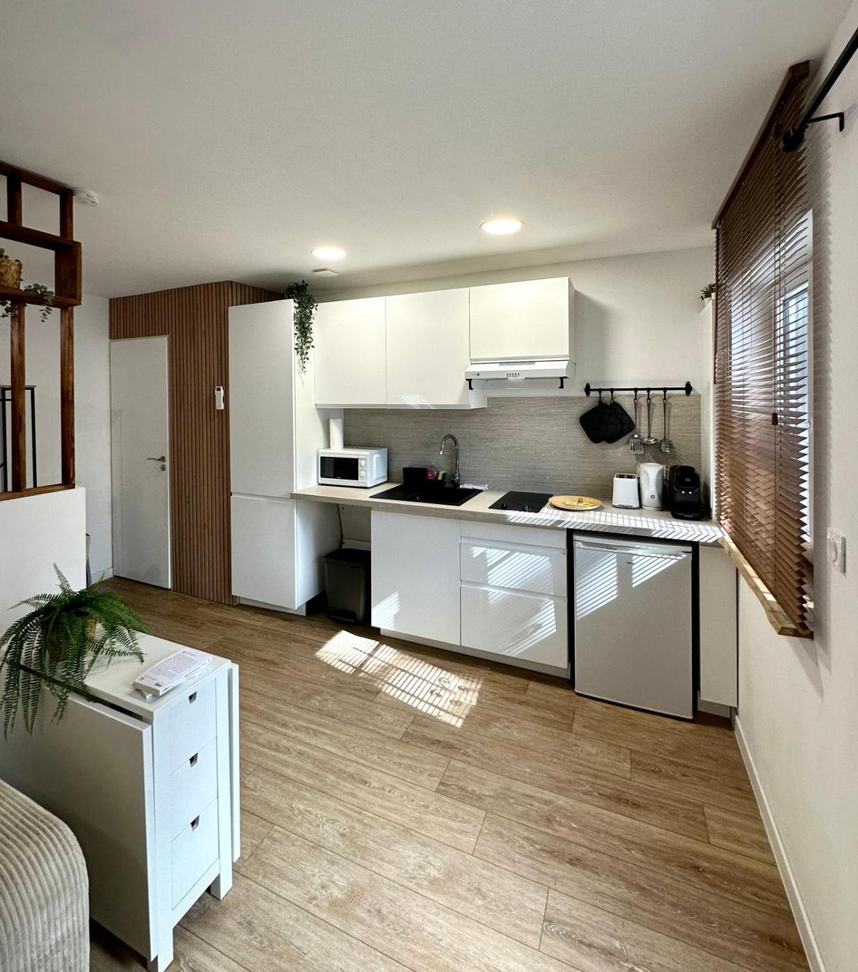 Appartement 1 Chambre. Featuring a private entrance, this air-conditioned apartment consists of 1 living room, 1 separate bedroom and 1 bathroom with a walk-in shower and a hairdryer. The fully equipped kitchen features a stovetop, a refrigerator, kitchenware and an oven. The apartment provides soundproof walls, a tea and coffee maker, a seating area, a flat-screen TV with cable channels, as well as city views. The unit offers 2 beds.