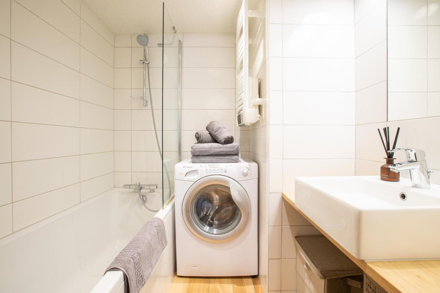 Appartement. Boasting a private entrance, this apartment features 1 living room, 1 separate bedroom and 1 bathroom with a bath and a hairdryer. Meals can be prepared in the kitchen, which has a stovetop, a refrigerator, a dishwasher and kitchenware. This apartment has a washing machine, a coffee machine, a flat-screen TV with streaming services and a balcony. The unit has 2 beds.
