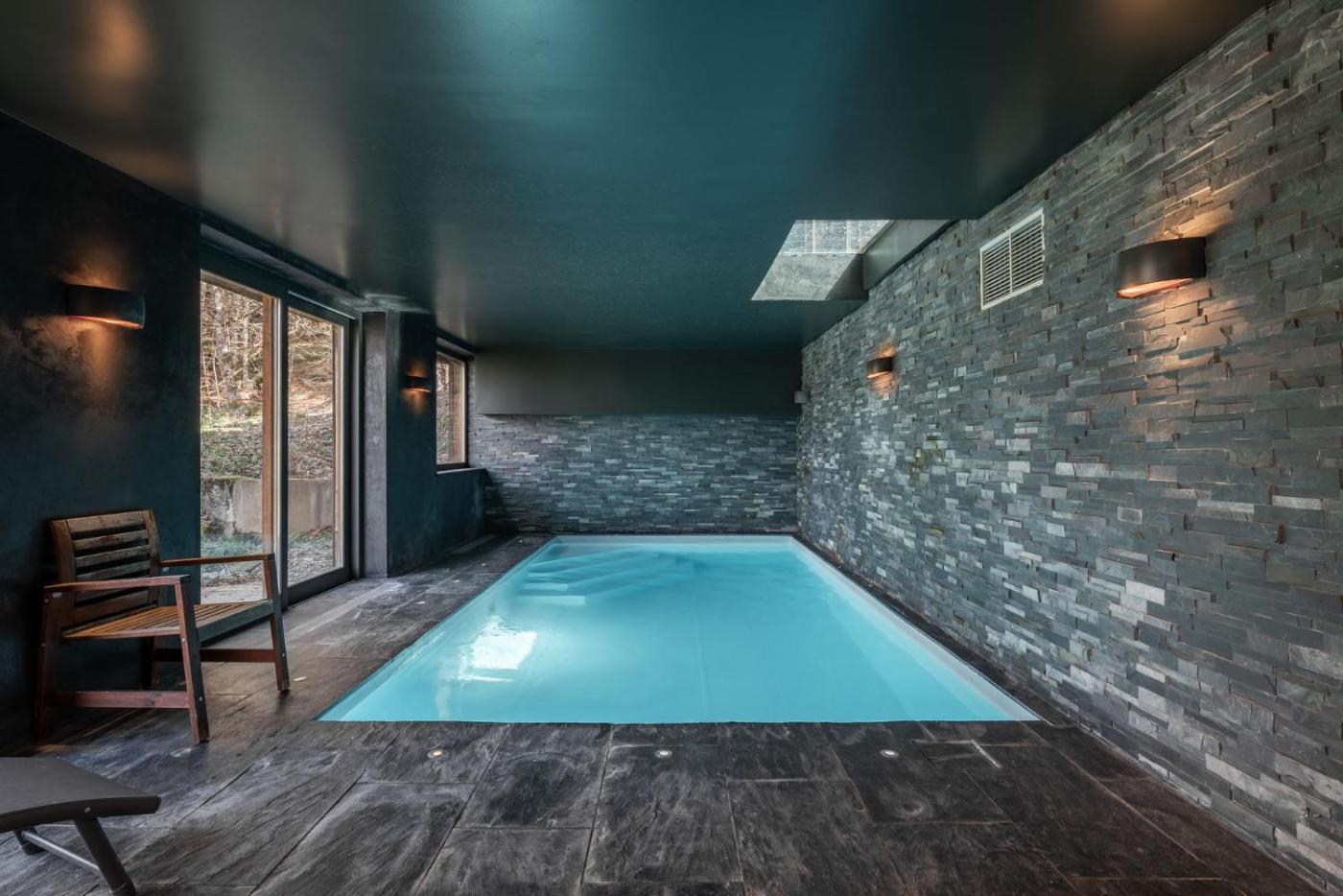 Chalet. This luxurious chalet has a private pool, a sauna and a fireplace. Boasting a private entrance, this spacious chalet also comes with 5 bedrooms, a seating area and 4 bathrooms with a bath and a shower. Guests will find a stovetop, a refrigerator, a dishwasher and kitchenware in the kitchen. The chalet also includes a barbecue. Featuring a terrace with mountain views, this chalet also features a washing machine and a flat-screen TV. The unit has 7 beds.