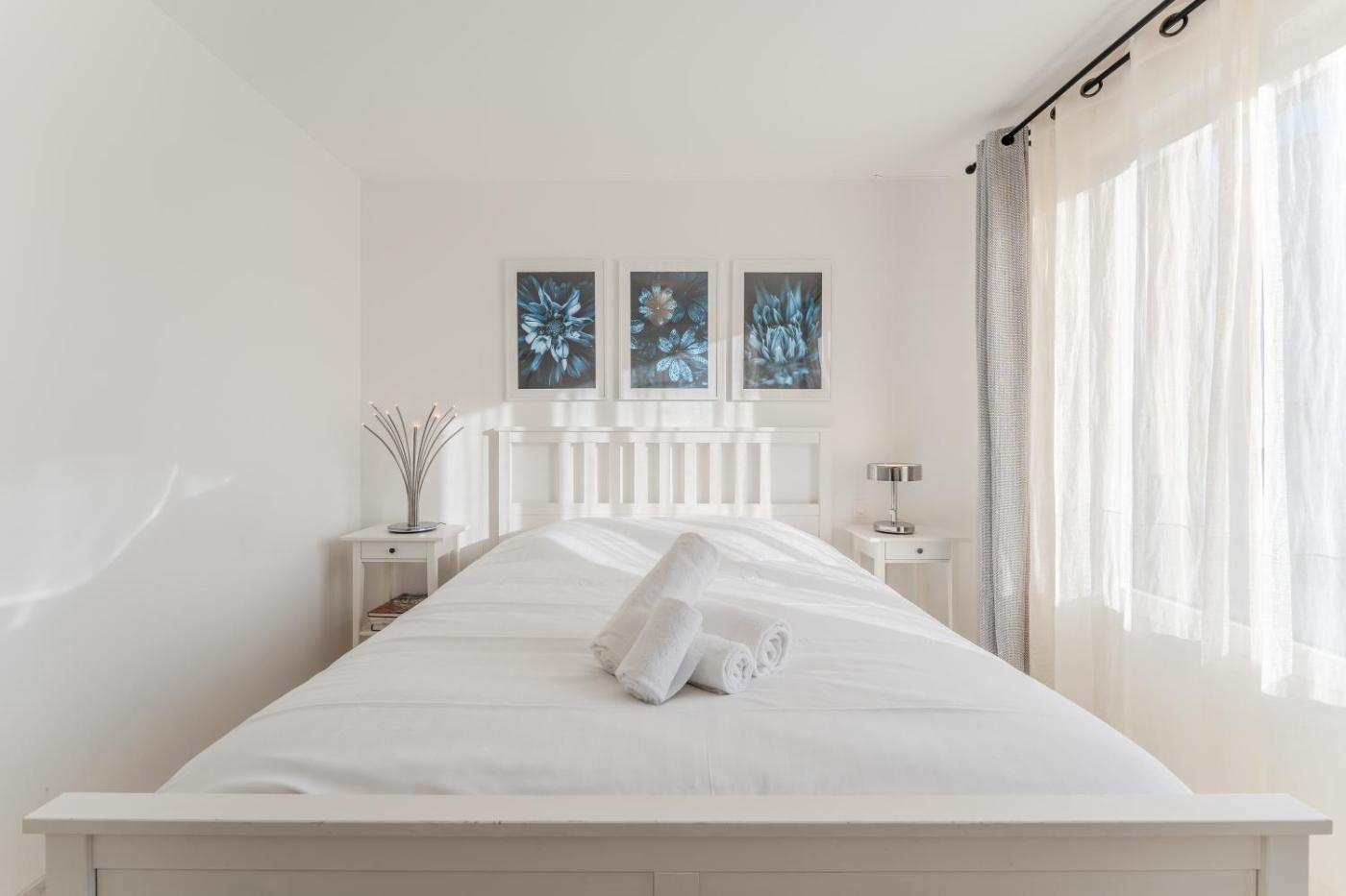 Cet appartement compte 2 chambres, un salon comportant une télévision avec les chaînes du câble, une cuisine entièrement équipée avec un réfrigérateur et un lave-vaisselle, ainsi que 1 salle de bains avec une douche. Des serviettes et du linge de lit sont mis à votre disposition.