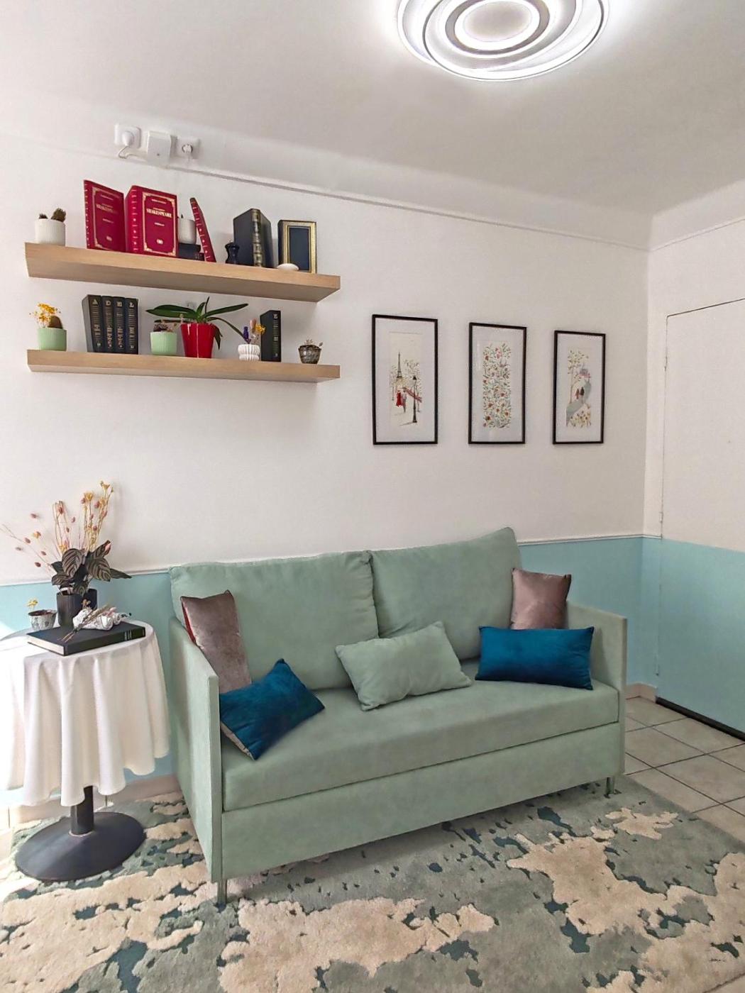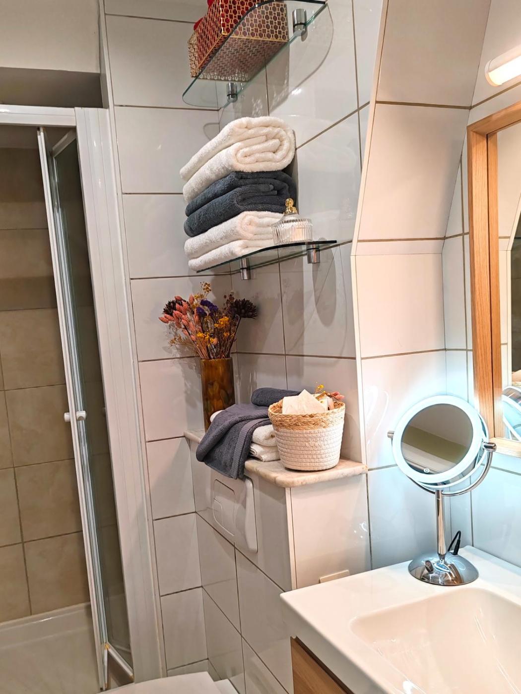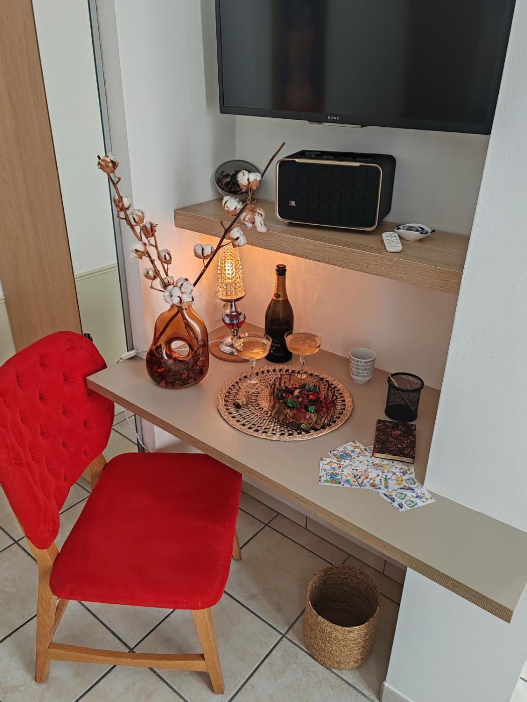 Appartement 1 Chambre. This apartment consists of 1 living room, 1 separate bedroom and 1 bathroom with a shower and a hairdryer. The fully equipped kitchen features a stovetop, a refrigerator, a dishwasher and kitchenware. This apartment has a washing machine, a tea and coffee maker, flat-screen TV, as well as winechampagne for guests. The unit offers 1 bed.