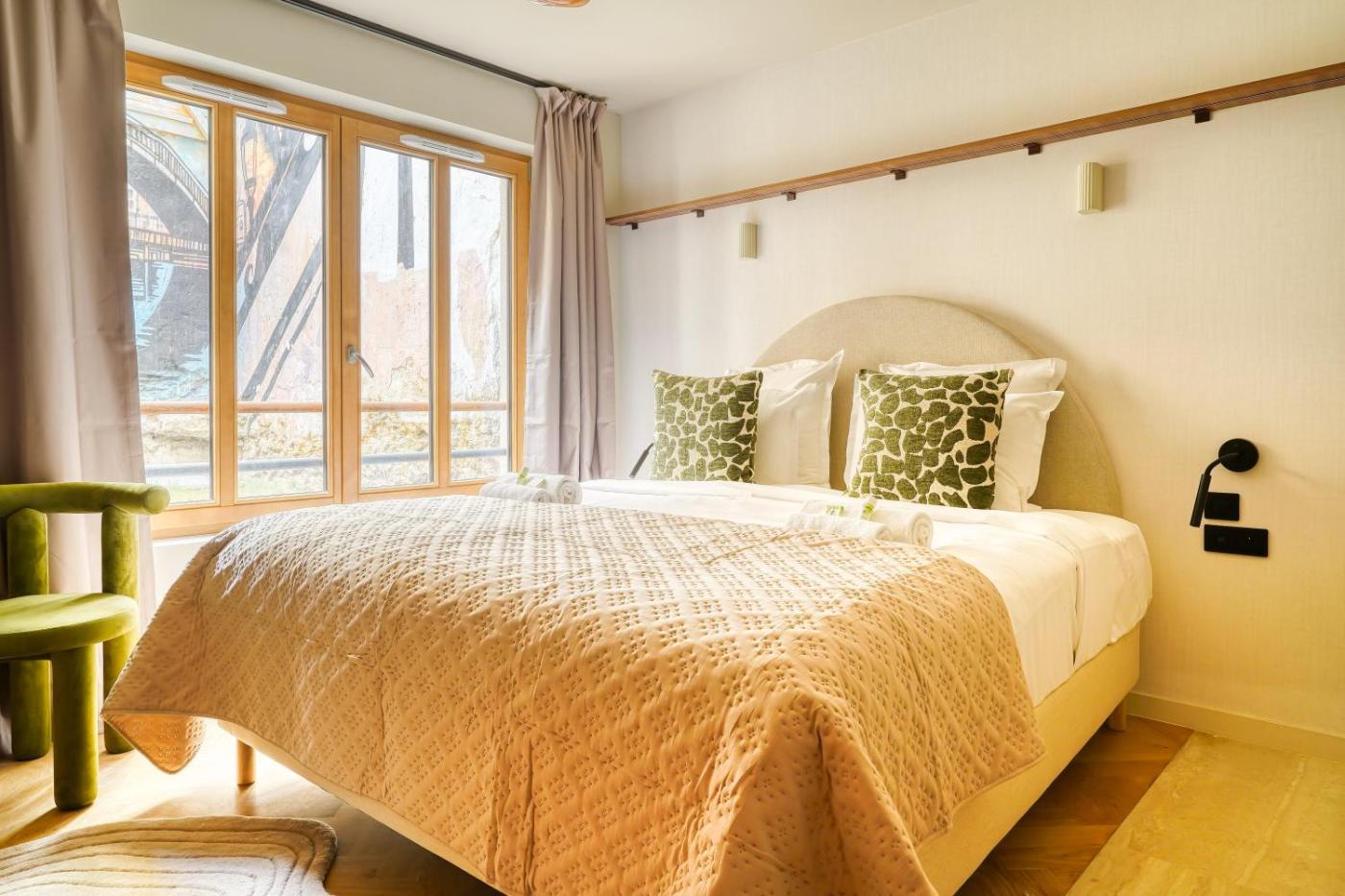 Appartement 1 Chambre Deluxe. Boasting a private entrance, this air-conditioned apartment includes 1 living room, 1 separate bedroom and 1 bathroom with a walk-in shower and a hairdryer. In the well-equipped kitchen, guests will find a stovetop, a refrigerator, a dishwasher and kitchenware. The apartment offers a flat-screen TV with streaming services, soundproof walls, a tea and coffee maker, a seating area as well as ancourtyard view. The unit has 2 beds. ;