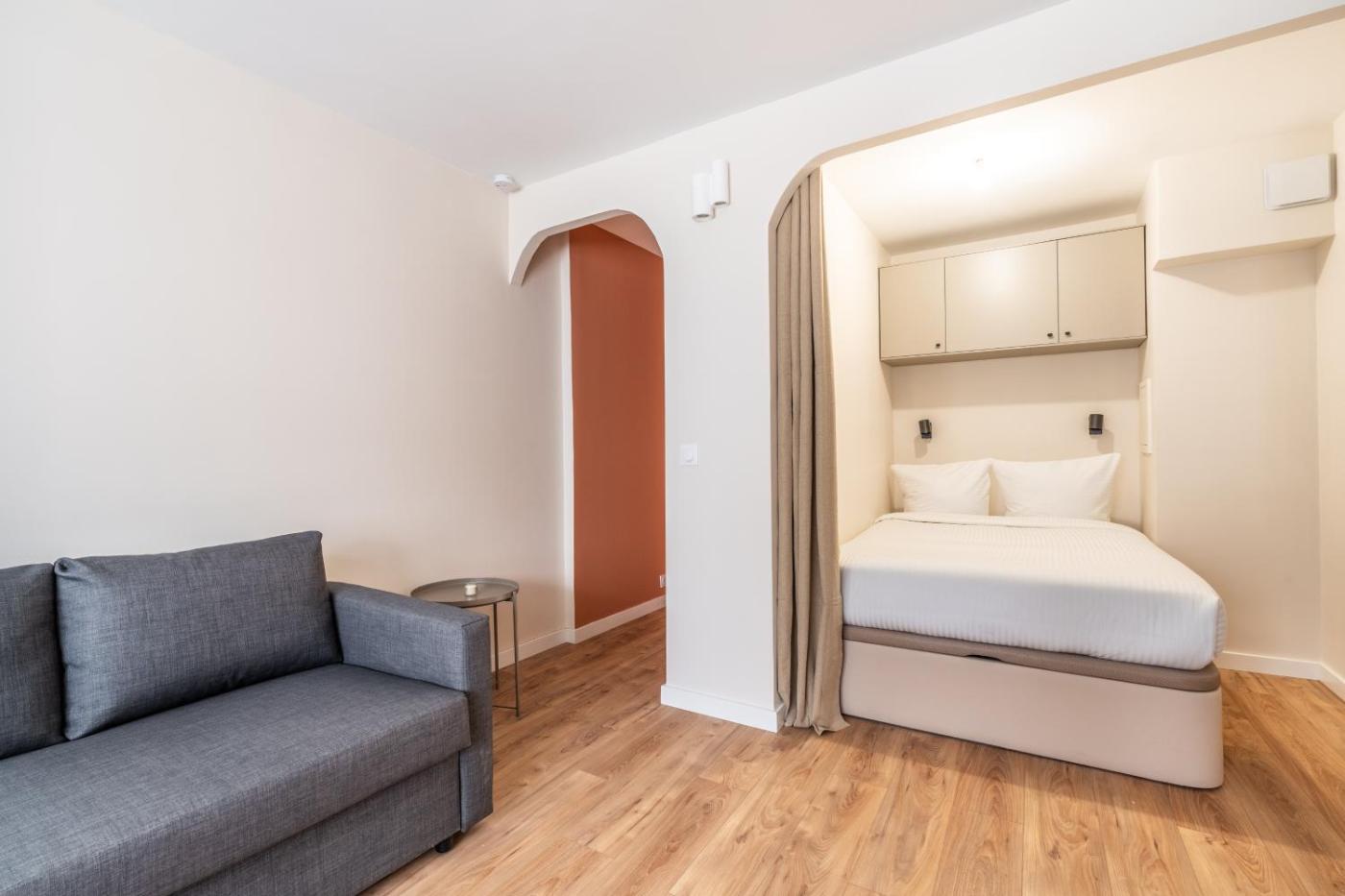 Appartement 1 Chambre. This apartment consists of 1 living room, 1 separate bedroom and 1 bathroom with a walk-in shower and free toiletries. Guests can make meals in the kitchen that is equipped with a stovetop, a refrigerator, a dishwasher and kitchenware. The apartment features parquet floors, a seating area with a flat-screen TV, a washing machine, a tea and coffee maker as well as a quiet street view. The unit offers 2 beds.