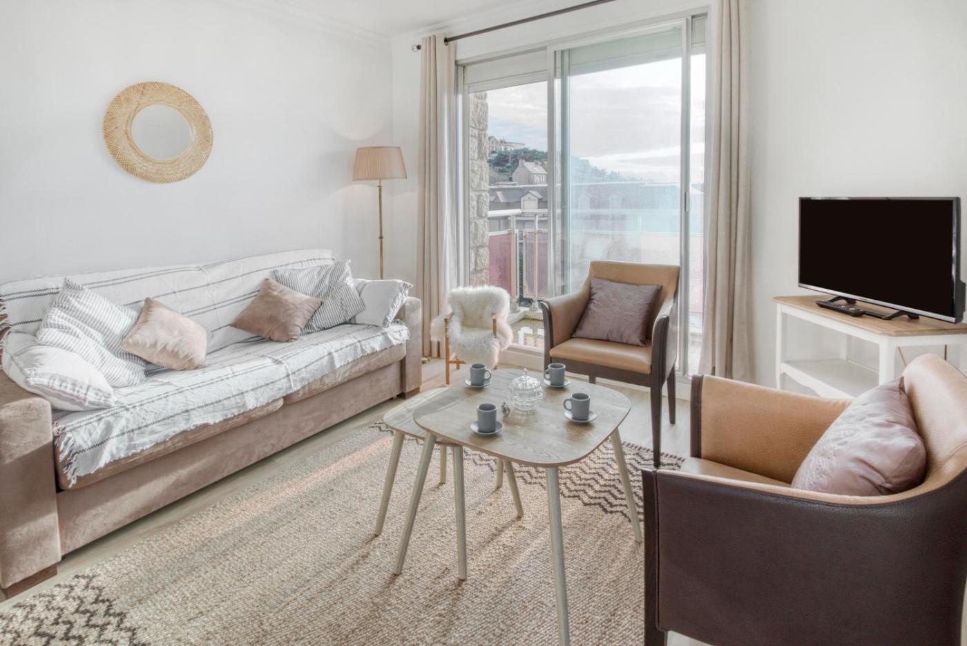 Appartement 1 Chambre. Featuring 1 bedroom, this apartment offers 1 bathroom with a bath, a seating area and terraceyou can relax. The well-fitted kitchen features a stovetop, a refrigerator, kitchenware and an oven. Boasting a balcony with sea views, this apartment also provides a washing machine and a TV. The unit has 2 beds.
