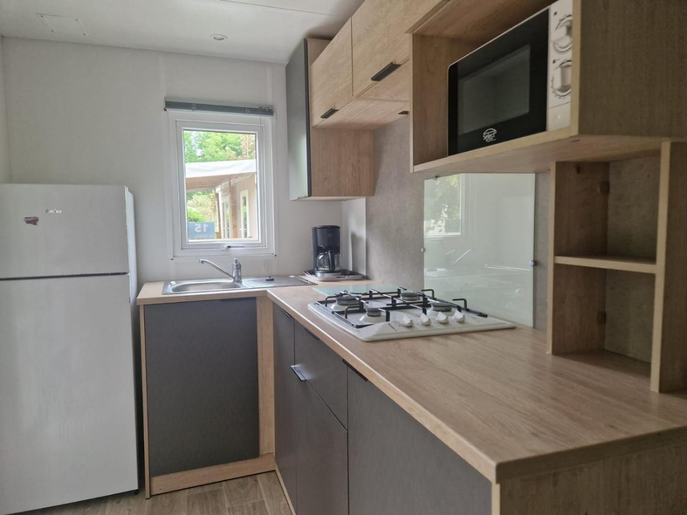 Mobile Home. The air-conditioned mobile home features 2 bedrooms and 1 bathroom with a shower. A seating area with a flat-screen TV, a dining area and an outdoor dining area are provided in this mobile home. The unit offers 3 beds.
