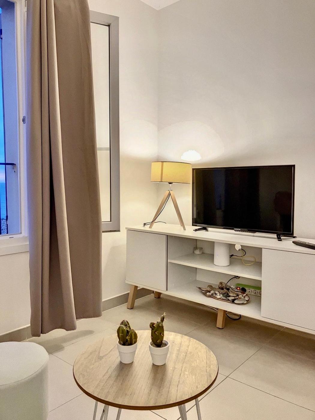 Appartement. Cet appartement climatisé comprend une entrée privée, un salon, une chambre séparée ainsi qu’une salle de bains avec une douche à litalienne et un sèche-cheveux. La cuisine bien équipée est munie de plaques de cuisson, d’un réfrigérateur, d’un lave-vaisselle et d’ustensiles. Cet appartement dispose d’une terrasse avec vue sur la mer, d’un lave-linge et d’une télévision par câble à écran plat. Ce logement comprend 2 lits.