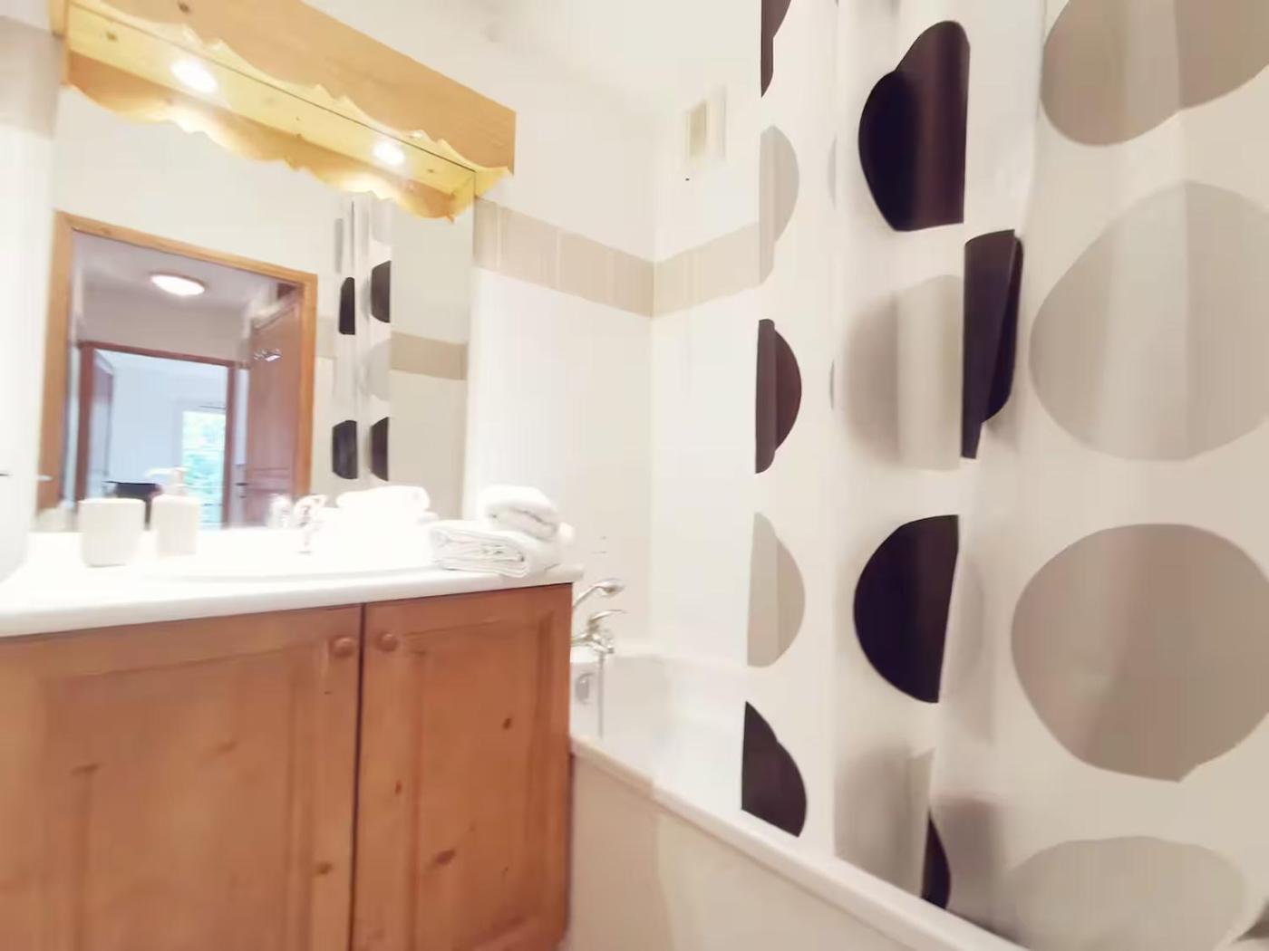 Cet appartement comporte 2 chambres, une cuisine avec un réfrigérateur et un lave-vaisselle, ainsi que 2 salles de bains avec une douche et une baignoire. Des serviettes et du linge de lit sont à disposition.