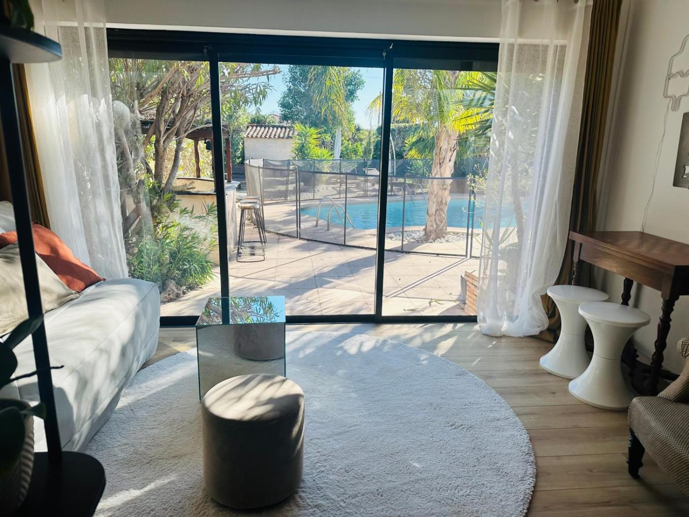 Appartement 1 Chambre. This apartments special feature is the private pool. Featuring a private entrance, this air-conditioned apartment consists of 1 living room, 1 separate bedroom and 1 bathroom with a shower and a hairdryer. The well-equipped kitchen features a stovetop, a refrigerator, kitchenware and an oven. Boasting a terrace with garden views, this apartment also provides a coffee machine and a flat-screen TV with streaming services. The unit offers 3 beds.