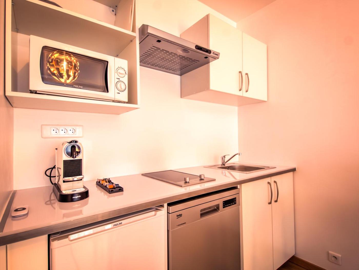 Appartement 1 Chambre. Featuring a private entrance, this apartment consists of 1 living room, 1 separate bedroom and 1 bathroom with a shower and a hairdryer. The well-equipped kitchen features a stovetop, a refrigerator, kitchenware and a microwave. The apartment has parquet floors, a seating area with a flat-screen TV, a coffee machine, a dining area, as well as a wardrobe. The unit offers 2 beds.