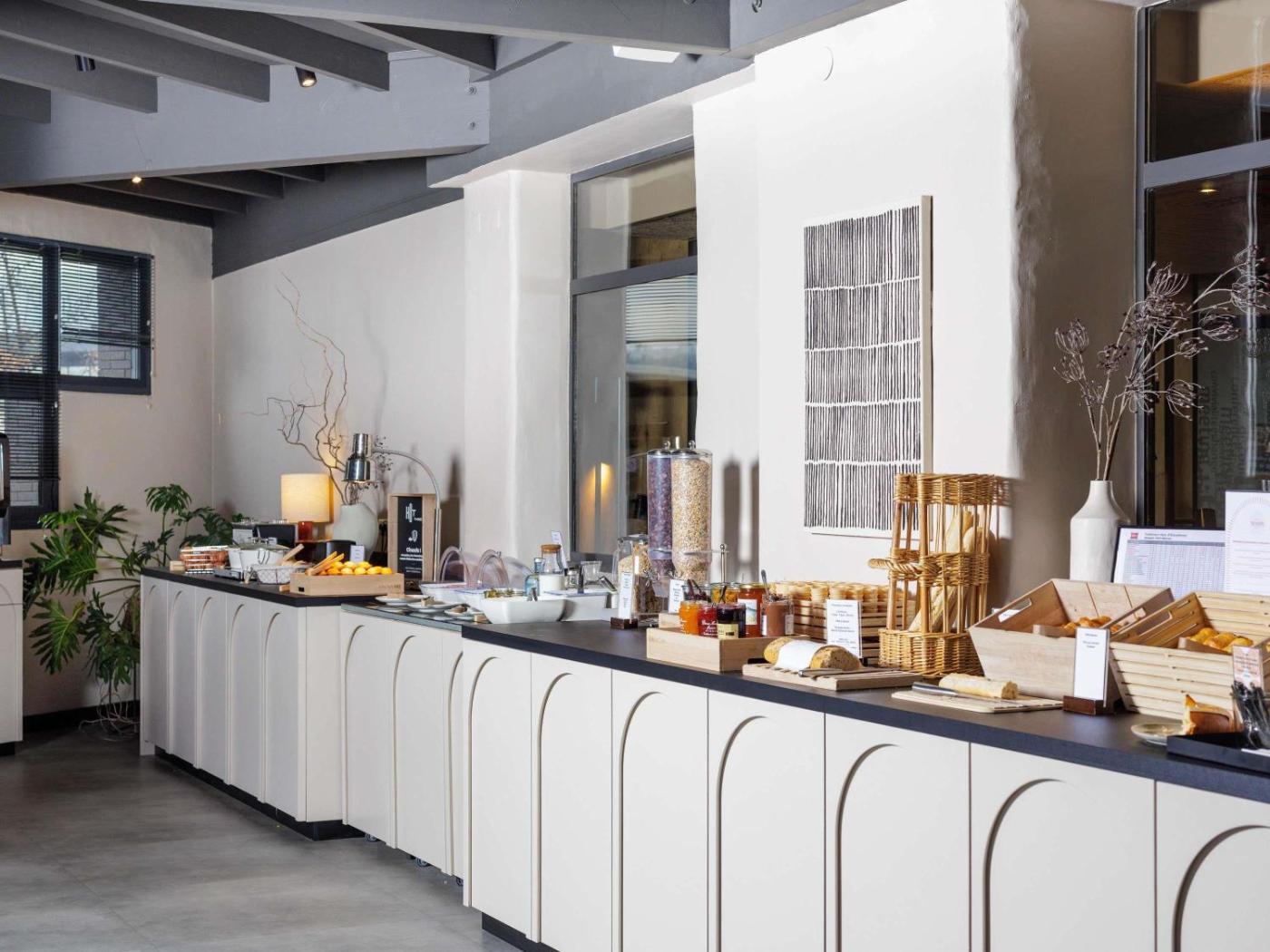 Chaque matin, le petit-déjeuner buffet comprend des mets sucrés et salés, comme des œufs, de la salade de fruits, des yaourts et des jus de fruits. Des viennoiseries cuites sur place, des madeleines fraîches ainsi qu’une boisson chaude et un fruit à emporter sont également disponibles. En dehors des horaires habituels, un petit-déjeuner plus léger est proposé à partir de 4h00.