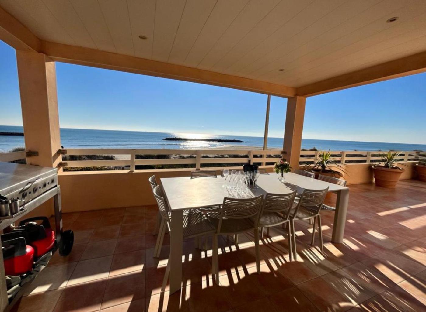 Villa - Vue sur Mer. This villa comes with 1 living room, 5 separate bedrooms and 2 bathrooms with a shower and a hairdryer. Guests will find a stovetop, a refrigerator, a dishwasher and kitchenware in the well-equipped kitchen. The villa also includes a barbecue. Boasting a terrace with sea views, this villa also features a washing machine and a flat-screen TV. The unit has 9 beds.