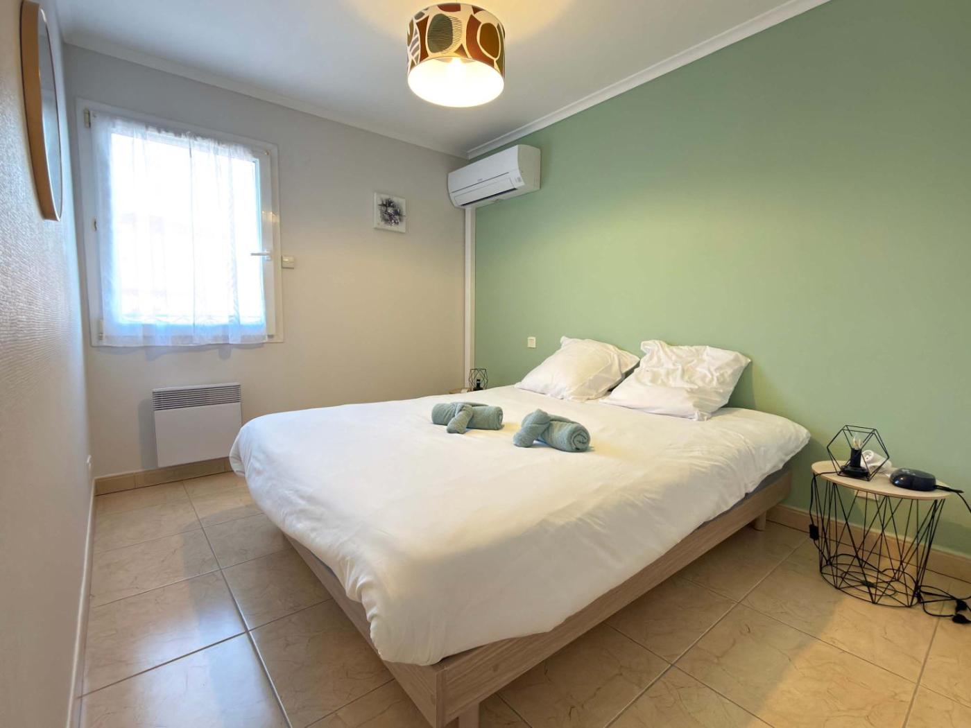 Cette maison de vacances avec climatisation se compose de 2 chambres séparées, dune cuisine entièrement équipée avec un réfrigérateur et un four, ainsi que de 1 salle de bains. Une télévision avec les chaînes du câble est à disposition.