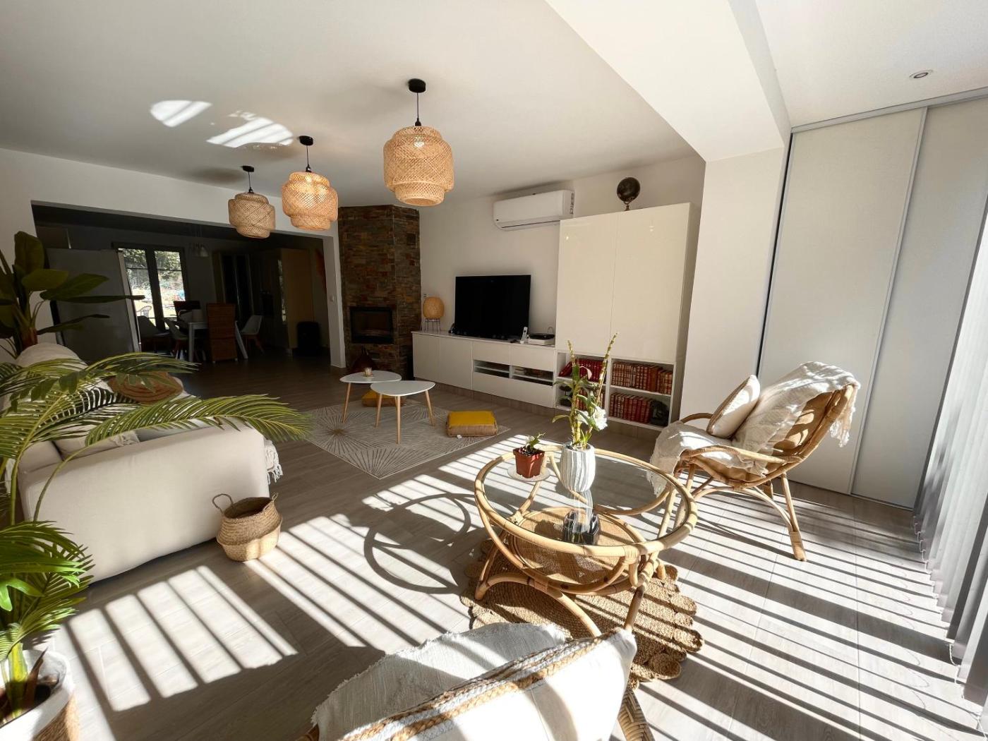 Maison 2 Chambres. Guests will have a special experience as this holiday home provides a fireplace. Featuring a private entrance, this air-conditioned holiday home is comprised of 1 living room, 2 separate bedrooms and 2 bathrooms with a walk-in shower and a hairdryer. Guests will find a stovetop, a refrigerator, a dishwasher and kitchenware in the fully equipped kitchen. The holiday home also has a barbecue. Boasting a terrace with garden views, this holiday home also offers a washing machine and a flat-screen TV. The unit offers 3 beds.